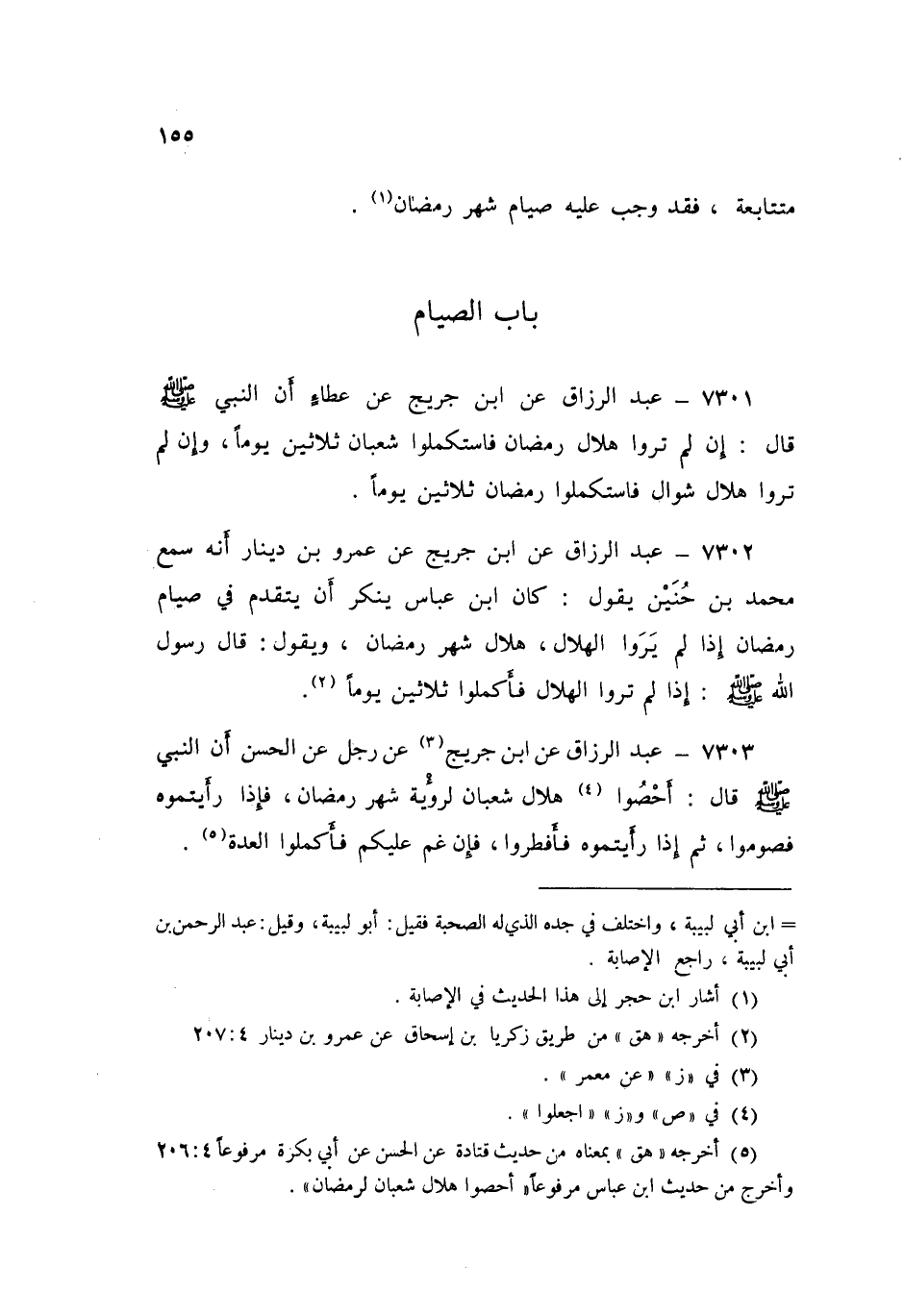 7302 - عَنِ ابْنِ جُرَيْجٍ، عَنْ عَمْرِو بْنِ دِينَارٍ، أَنَّهُ سَمِعَ مُحَمَّدَ بْنَ حُنَيْنٍ يَقُولُ: كَانَ ابْنُ عَبَّاسٍ يُنْكِرُ إِنْ يَتَقَدَّمَ فِي صِيَامِ رَمَضَانَ إِذَا لَمْ يَرَوُا الْهِلَالَ هِلَالَ شَهْرِ رَمَضَانَ، وَيَقُولُ: قَالَ رَسُولُ اللَّهِ صَلَّى اللهُ عَلَيْهِ وَسَلَّمَ: «§إِذَا لَمْ تَرَوُا الْهِلَالَ فَأَكْمِلُوا ثَلَاثِينَ يَوْمًا»
