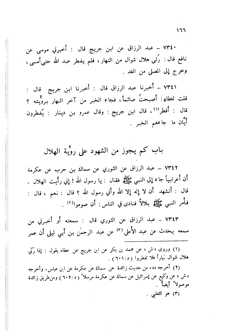 7343 - عَنِ الثَّوْرِيِّ قَالَ: سَمِعْتُهُ، أَوْ أَخْبَرَنِي مَنْ سَمِعَهُ يُحَدِّثُ، عَنْ عَبْدِ الْأَعْلَى، عَنْ عَبْدِ الرَّحْمَنِ بْنِ أَبِي لَيْلَى، أَنَّ عُمَرَ بْنَ الْخَطَّابِ «§أَجَازَ شَهَادَةَ رَجُلٍ وَاحِدٍ فِي رُؤْيَةِ الْهِلَالِ فِي فِطْرٍ أَوْ أَضْحَى»