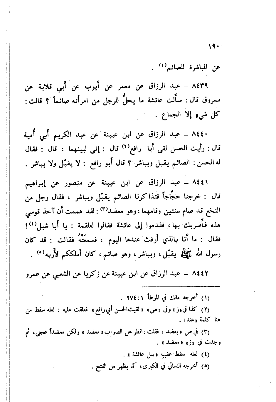 7442 - عَنِ ابْنِ عُيَيْنَةَ، عَنْ زَكَرِيَّا، عَنِ الشَّعْبِيِّ، عَنْ عَمْرِو بْنِ شُرَحْبِيلٍ، أَنَّ ابْنَ مَسْعُودٍ «كَانَ §يُبَاشِرُ امْرَأَتَهُ بِنِصْفِ النَّهَارِ، وَهُوَ صَائِمٌ»