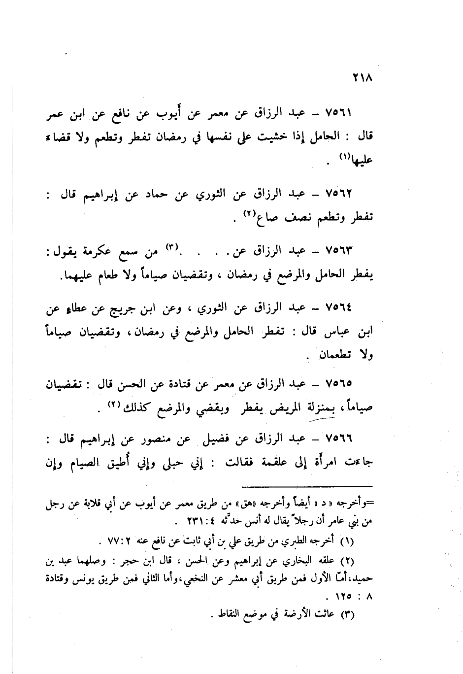7564 - عَنِ الثَّوْرِيِّ، وَعَنِ ابْنِ جُرَيْجٍ، عَنْ عَطَاءٍ، عَنِ ابْنِ عَبَّاسٍ قَالَ: «§تُفْطِرُ الْحَامِلُ وَالْمُرْضِعُ فِي رَمَضَانَ، وَتَقْضِيَانِ صِيَامًا، وَلَا تُطْعِمَانِ»