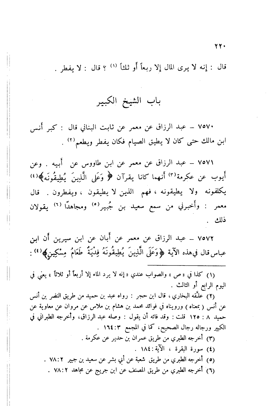 7570 - عَنْ مَعْمَرٍ، عَنْ ثَابِتٍ الْبُنَانِيِّ قَالَ: «§كَبُرَ أَنَسُ بْنُ مَالِكٍ حَتَّى كَانَ لَا يُطِيقُ الصِّيَامَ، فَكَانَ يُفْطِرُ وَيُطْعِمُ»