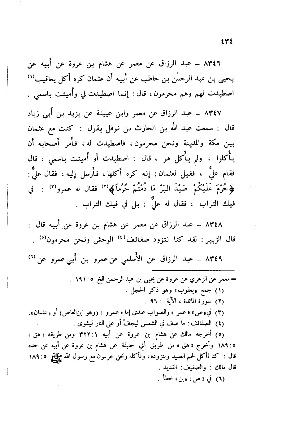 8348 - عَنْ مَعْمَرٍ، عَنْ هِشَامِ بْنِ عُرْوَةَ، عَنْ أَبِيهِ قَالَ: قَالَ الزُّبَيْرُ: «§لَقَدْ كُنَّا نَتَزَوَّدُ صَفَائِفَ الْوَحْشِ، وَنَحْنُ مُحْرِمُونَ»