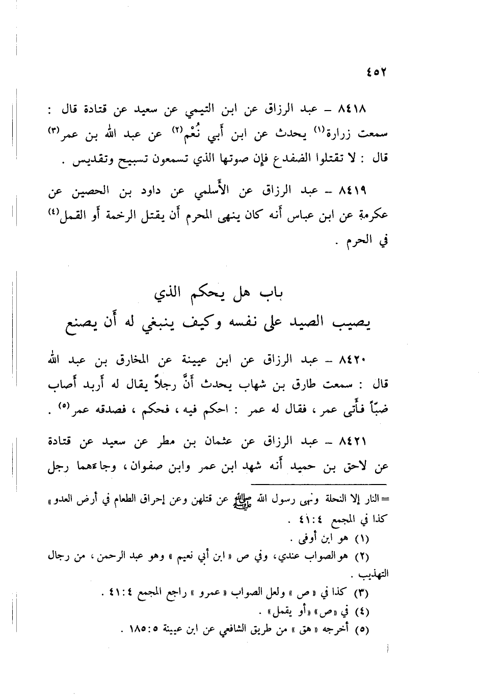 8419 - عَنِ الْأَسْلَمِيِّ، عَنْ دَاوُدَ بْنِ الْحُصَيْنِ، عَنْ عِكْرِمَةَ، عَنِ ابْنِ عَبَّاسِ، أَنَّهُ كَانَ «§يَنْهَى الْمُحْرِمَ أَنْ يَقْتُلَ الرَّخَمَةَ أَوِ الْقُمَّلَ فِي الْحَرَمِ»