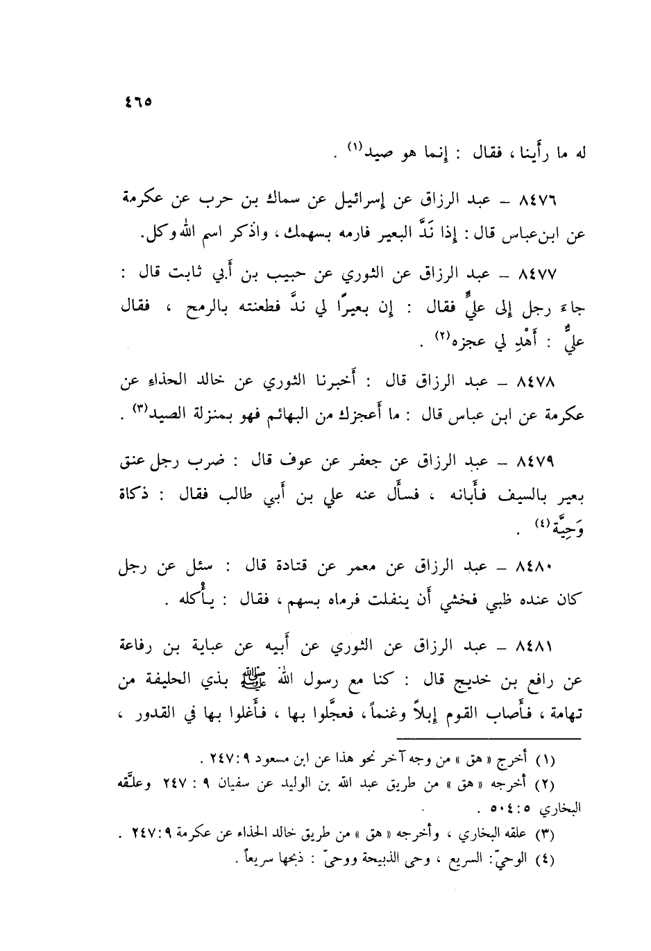 8478 - قَالَ: أَخْبَرَنَا الثَّوْرِيُّ، عَنْ خَالِدٍ الْحَذَّاءِ، عَنْ عِكْرِمَةَ، عَنِ ابْنِ عَبَّاسْ قَالَ: «§مَا أَعْجَزَكَ مِنَ الْبَهَائِمِ، فَهُوَ بِمَنْزِلَةِ الصَّيْدِ»