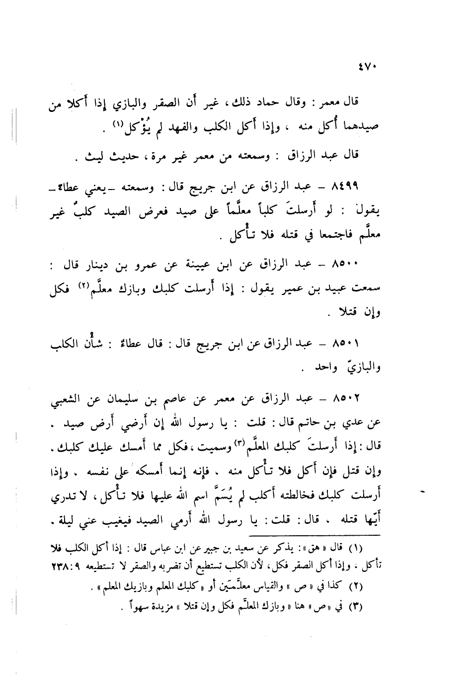 8501 - عَنِ ابْنِ جُرَيْجٍ قَالَ: قَالَ عَطَاءٌ: «§شَأْنُ الْكَلْبِ، وَالْبَازِيِّ وَاحِدٌ»