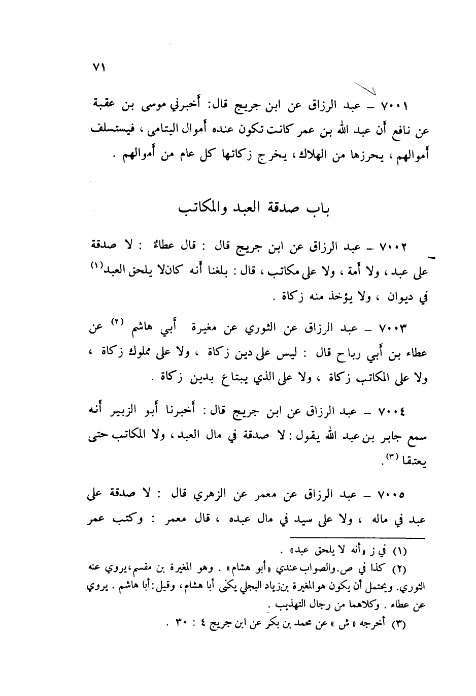 7004 - عَنِ ابْنِ جُرَيْجٍ قَالَ: أَخْبَرَنَا أَبُو الزُّبَيْرِ، أَنَّهُ سَمِعَ جَابِرَ بْنَ عَبْدِ اللَّهِ يَقُولُ: «§لَا صَدَقَةَ فِي مَالِ الْعَبْدِ، وَلَا الْمُكَاتِبِ حَتَّى يُعْتَقَا»