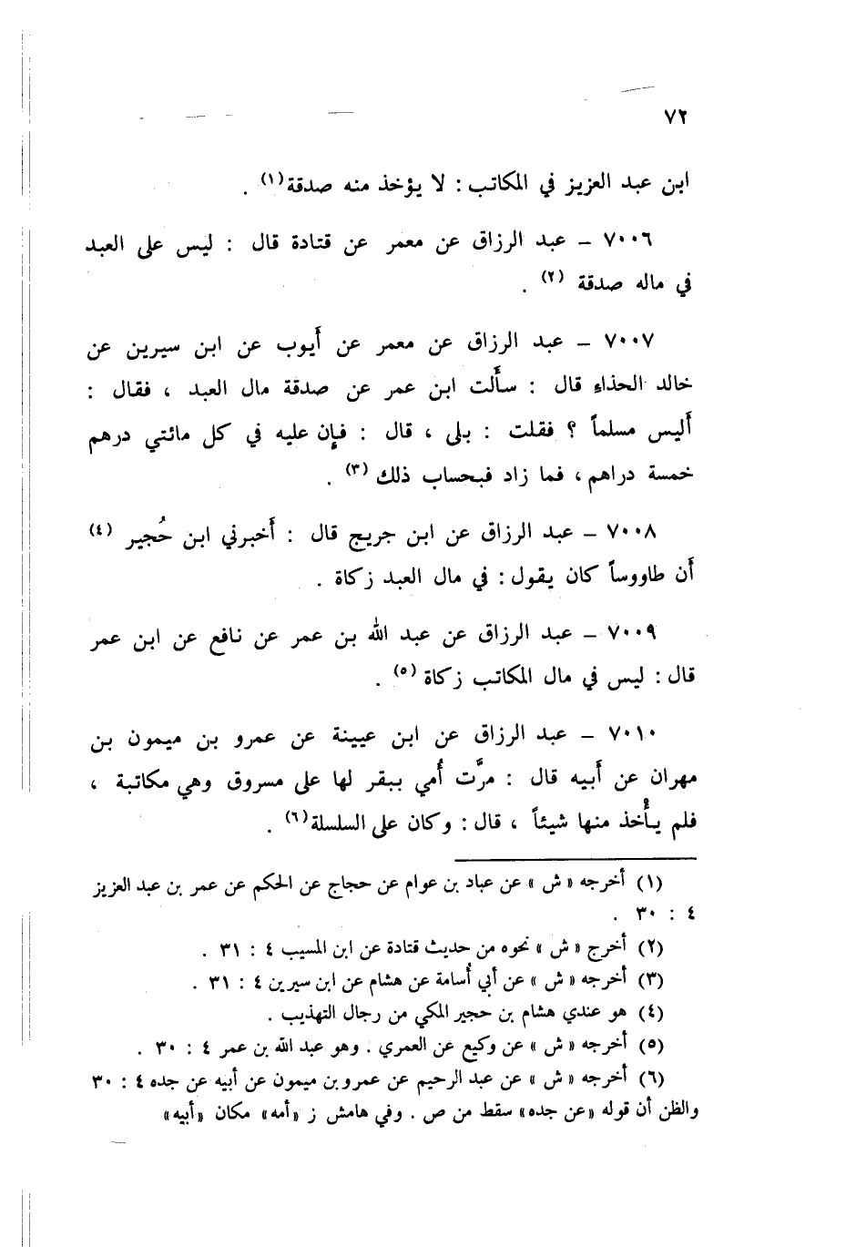 7008 - عَنِ ابْنِ جُرَيْجٍ قَالَ: أَخْبَرَنِي ابْنُ حُجَيْرٍ، أَنَّ طَاوُسًا كَانَ يَقُولُ: «§فِي مَالِ الْعَبْدِ زَكَاةٌ»