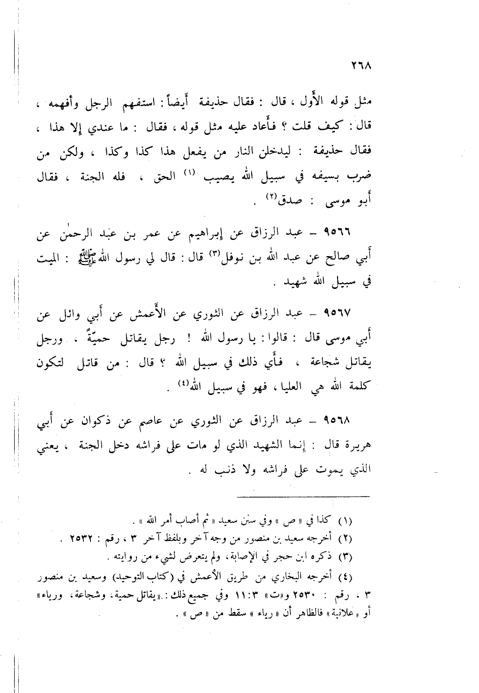 9569 - عَنِ الثَّوْرِيِّ، عَنْ مَنْصُورٍ، عَنْ أَبِي الضُّحَى، عَنْ مَسْرُوقٍ قَالَ: «§هِيَ خَاصَّةٌ لِلشَّهِيدِ»