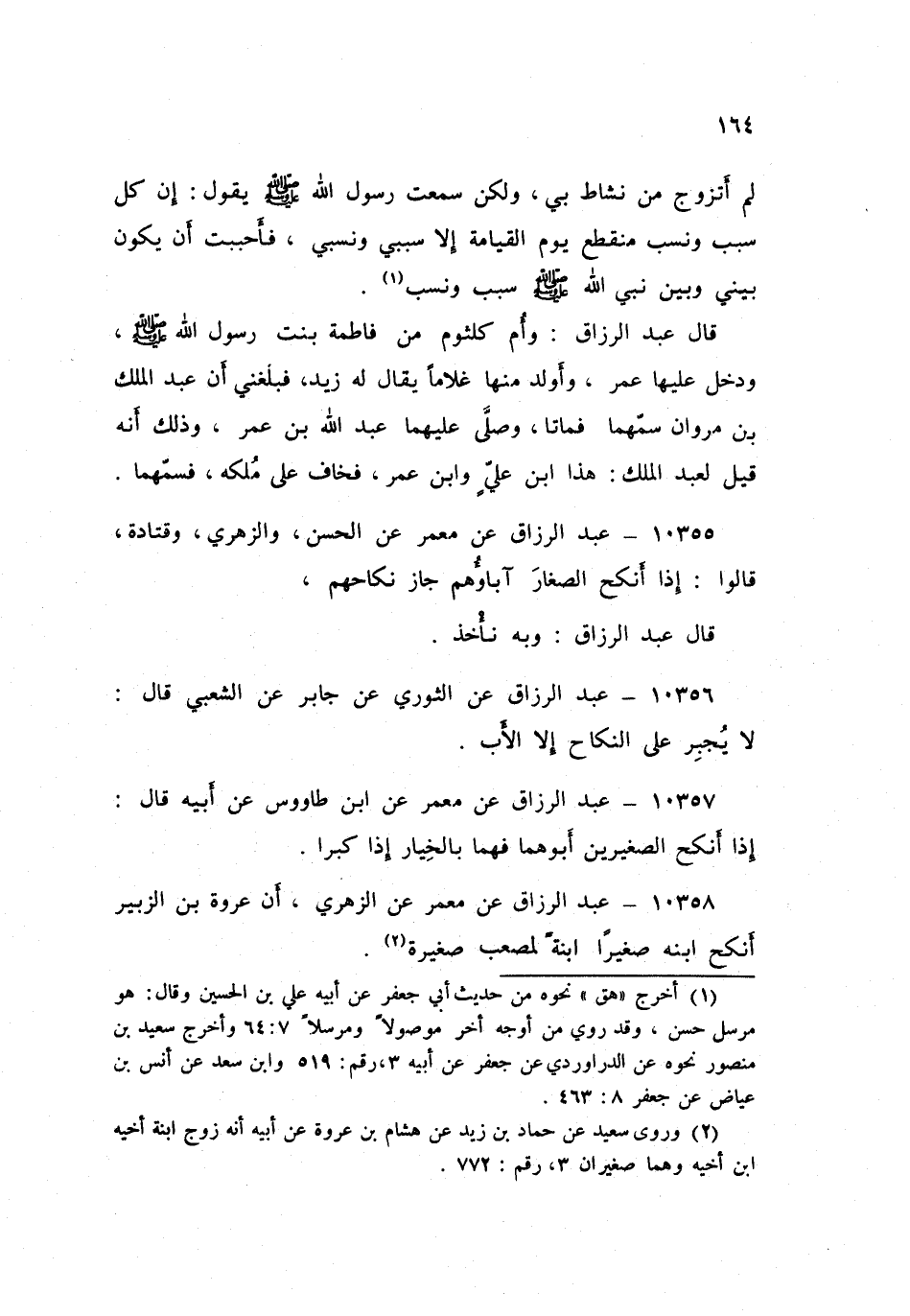 10358 - عَنْ مَعْمَرٍ، عَنِ الزُّهْرِيِّ: " أَنَّ عُرْوَةَ بْنَ الزُّبَيْرِ: §أَنْكَحَ ابْنَهُ صَغِيرًا ابْنَةً لِمُصَعْبٍ صَغِيرَةً "