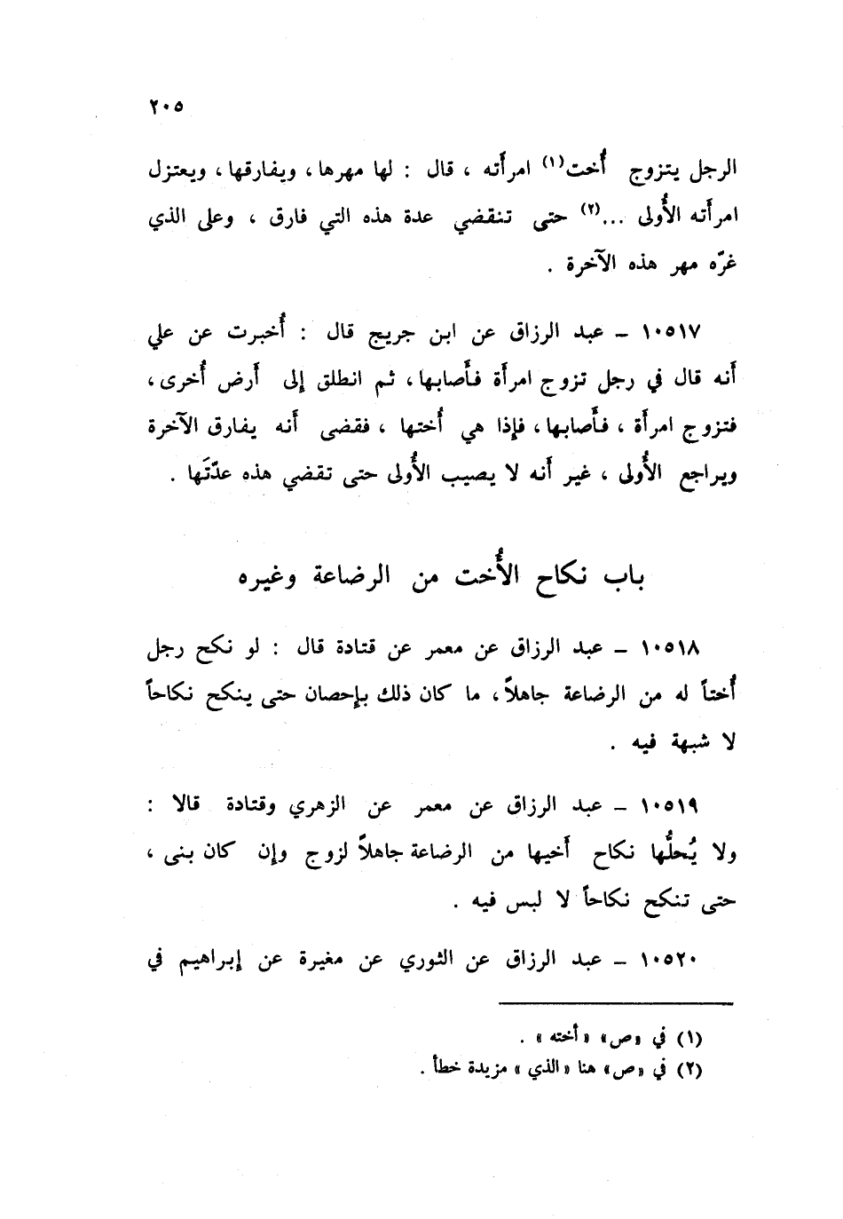 10519 - عَنْ مَعْمَرٍ، عَنِ الزُّهْرِيِّ، وَقَتَادَةَ، قَالَا: «§وَلَا يُحِلُّهَا نِكَاحُ أَخِيهَا مِنَ الرَّضَاعَةِ جَاهِلًا لِزَوْجٍ، وَإِنْ كَانَ بَنَى حَتَّى تَنْكِحَ نِكَاحًا لَا لُبْسَ فِيهِ»
