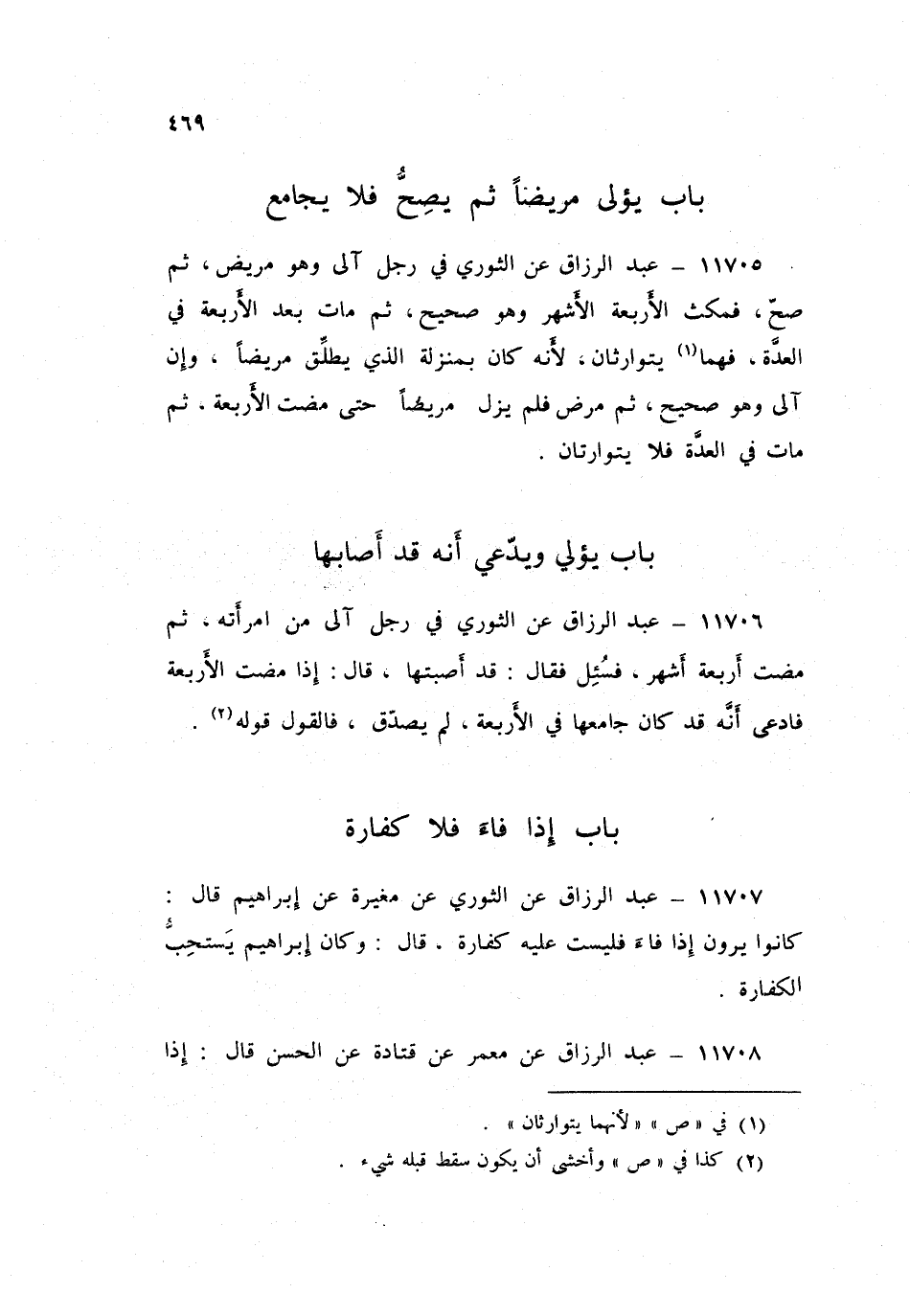 11707 - عَنِ الثَّوْرِيِّ، عَنْ مُغِيرَةَ، عَنْ إِبْرَاهِيمَ قَالَ: «§كَانُوا يَرَوْنَ إِذَا فَاءَ فَلَيْسَتْ عَلَيْهِ كَفَّارَةٌ» قَالَ: وَكَانَ إِبْرَاهِيمُ يَسْتَحِبُّ الْكَفَّارَةَ