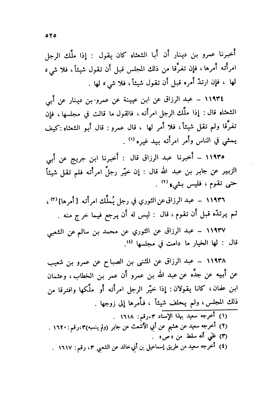 11935 - عَبْدُ الرَّزَّاقِ قَالَ: أَخْبَرَنَا ابْنُ جُرَيْجٍ، عَنْ أَبِي الزُّبَيْرِ، عَنْ جَابِرِ بْنِ عَبْدِ اللَّهِ قَالَ: «§إِنْ خَيَّرَ رَجُلٌ امْرَأَتَهُ فَلَمْ تَقُلْ شَيْئًا حَتَّى تَقُومَ فَلَيْسَ بِشَيْءٍ»