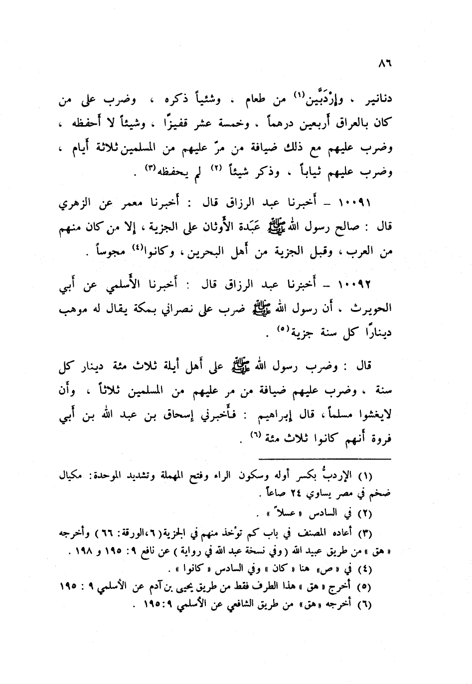 10091 - عَبْدُ الرَّزَّاقِ قَالَ: أَخْبَرَنَا مَعْمَرٌ، عَنِ الزُّهْرِيِّ قَالَ: «§صَالَحَ رَسُولُ اللَّهِ صَلَّى اللهُ عَلَيْهِ وَسَلَّمَ عَبَدَةَ الْأَوْثَانِ عَلَى الْجِزْيَةِ إِلَّا مَنْ كَانَ مِنْهُمْ مِنَ الْعَرَبِ، وَقَبِلَ الْجِزْيَةَ مِنْ أَهْلِ الْبَحْرَيْنِ، وَكَانُوا مَجُوسًا»