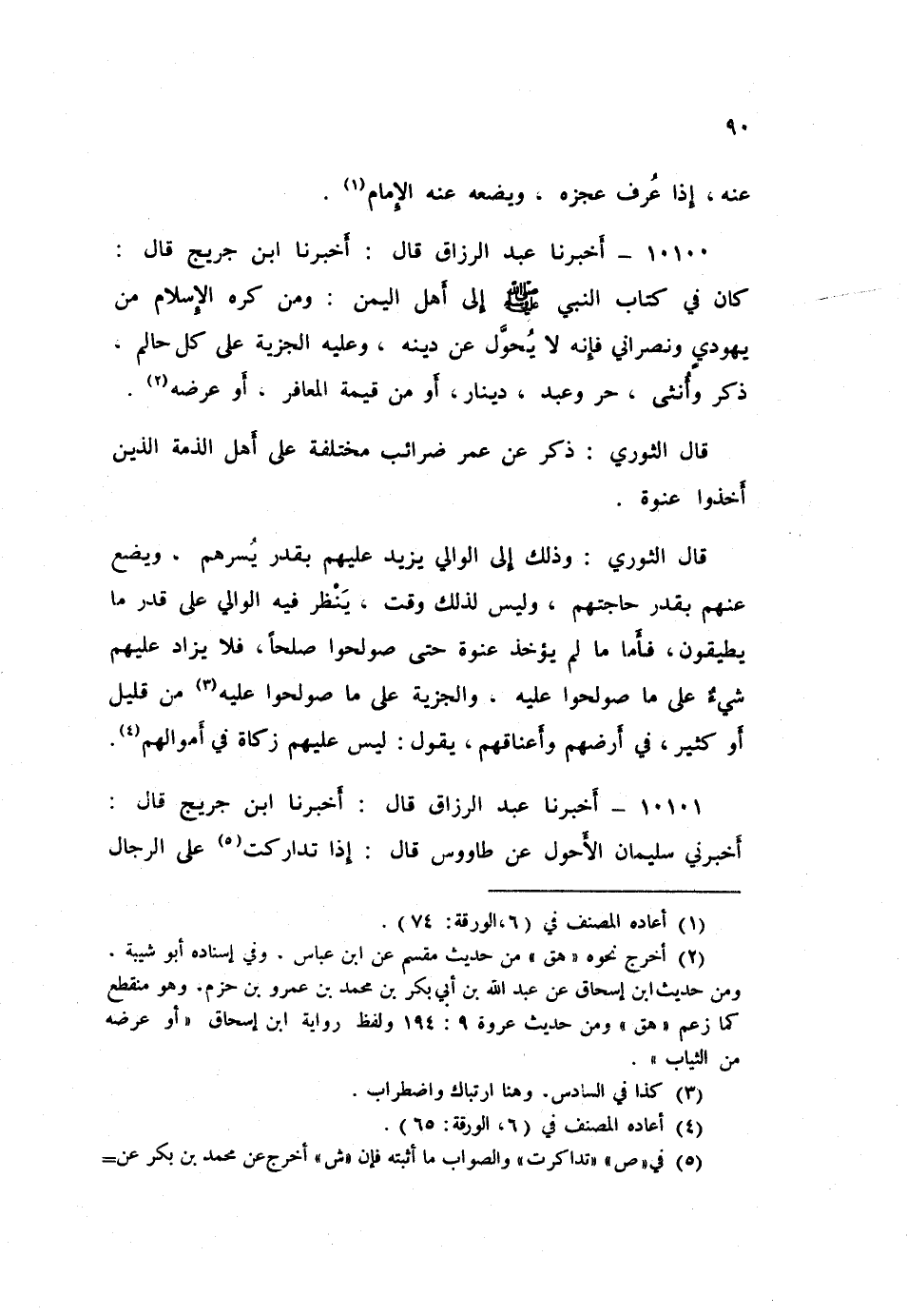 10101 - عَبْدُ الرَّزَّاقِ قَالَ: أَخْبَرَنَا ابْنُ جُرَيْجٍ قَالَ: أَخْبَرَنِي سُلَيْمَانُ الْأَحْوَلُ، عَنْ طَاوُسٍ قَالَ: «§إِذَا تَدَارَكَتْ عَلَى الرِّجَالِ جِزْيَتَانِ أُخِذَتِ الْأُولَى»