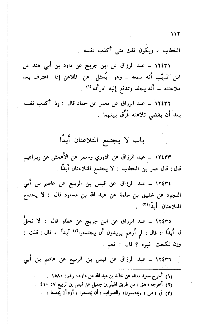 12433 - عَنِ الثَّوْرِيِّ، وَمَعْمَرٍ، عَنِ الْأَعْمَشِ، عَنْ إِبْرَاهِيمَ قَالَ: قَالَ عُمَرُ بْنُ الْخَطَّابِ: «§لَا يَجْتَمِعُ الْمُتَلَاعِنَانِ أَبَدًا»