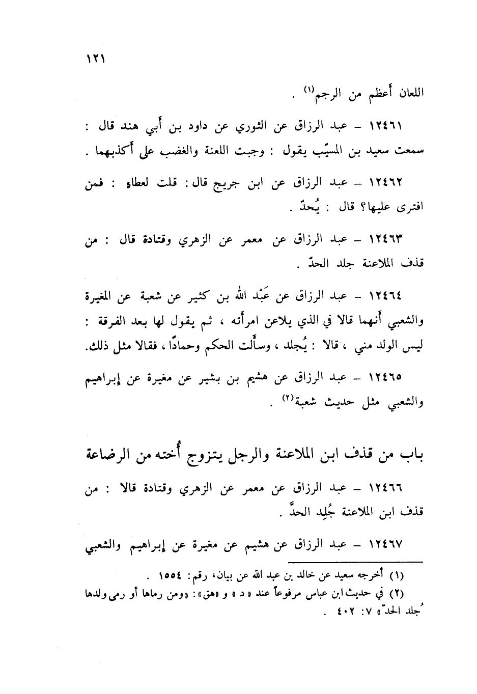 12463 - عَنْ مَعْمَرٍ، عَنِ الزُّهْرِيِّ، وَقَتَادَةَ قَالَ: «§مَنْ قَذَفَ الْمُلَاعِنَةَ جُلِدَ الْحَدَّ»