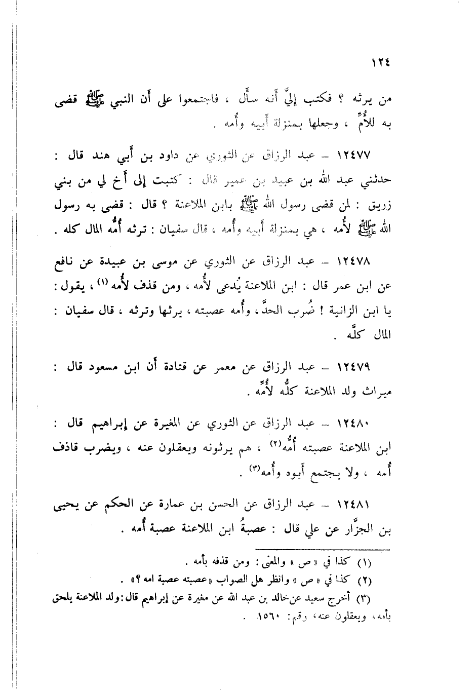 12479 - عَنْ مَعْمَرٍ، عَنْ قَتَادَةَ، أَنَّ ابْنَ مَسْعُودٍ قَالَ: «§مِيرَاثُ وَلَدِ الْمُلَاعِنَةِ كُلُّهُ لِأُمِّهِ»
