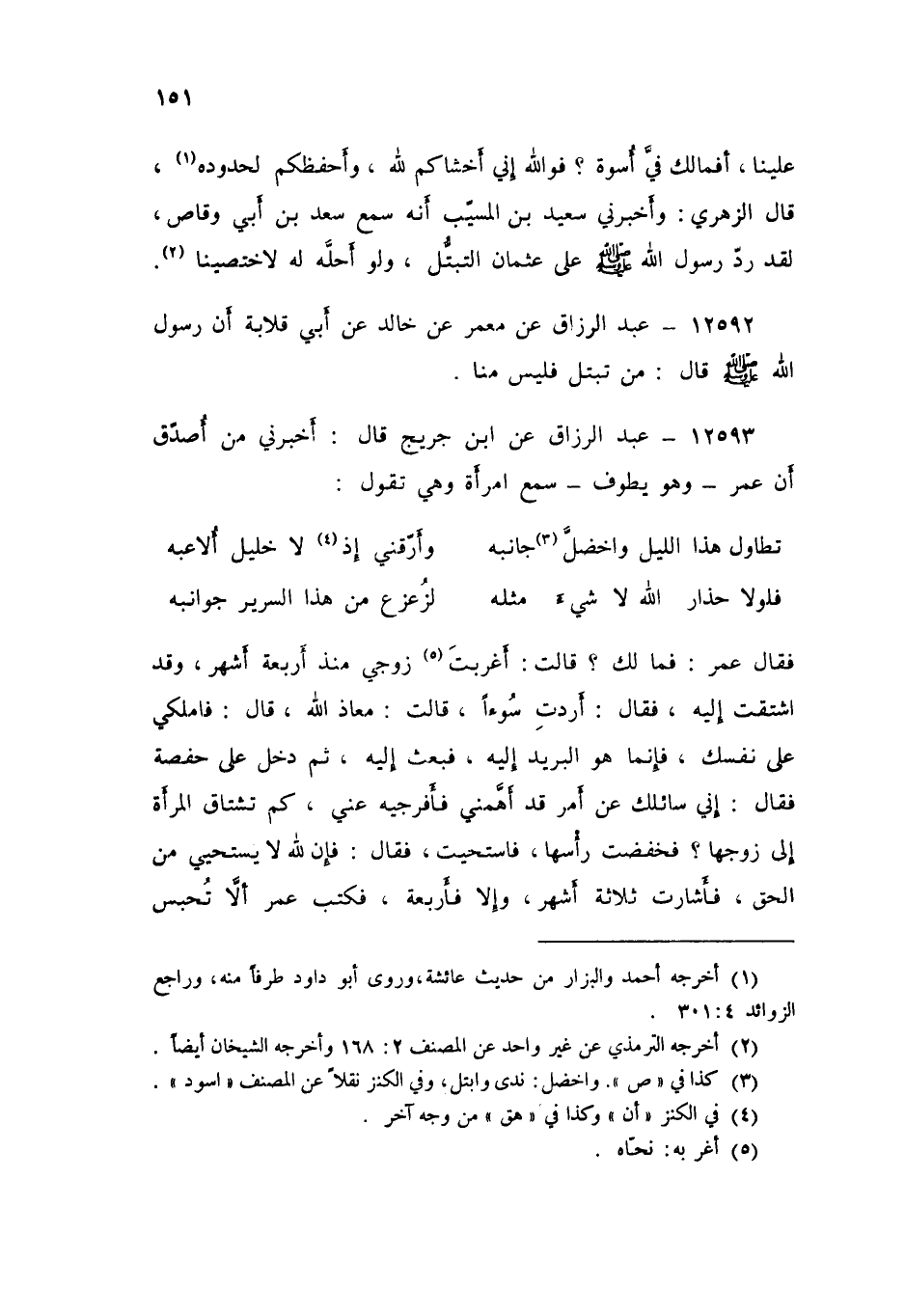 12593 - عَنِ ابْنِ جُرَيْجٍ قَالَ: أَخْبَرَنِي مَنْ أُصَدِّقُ، أَنَّ عُمَرَ، وَهُوَ يَطُوفُ سَمِعَ امْرَأَةً، وَهِيَ تَقُولُ: