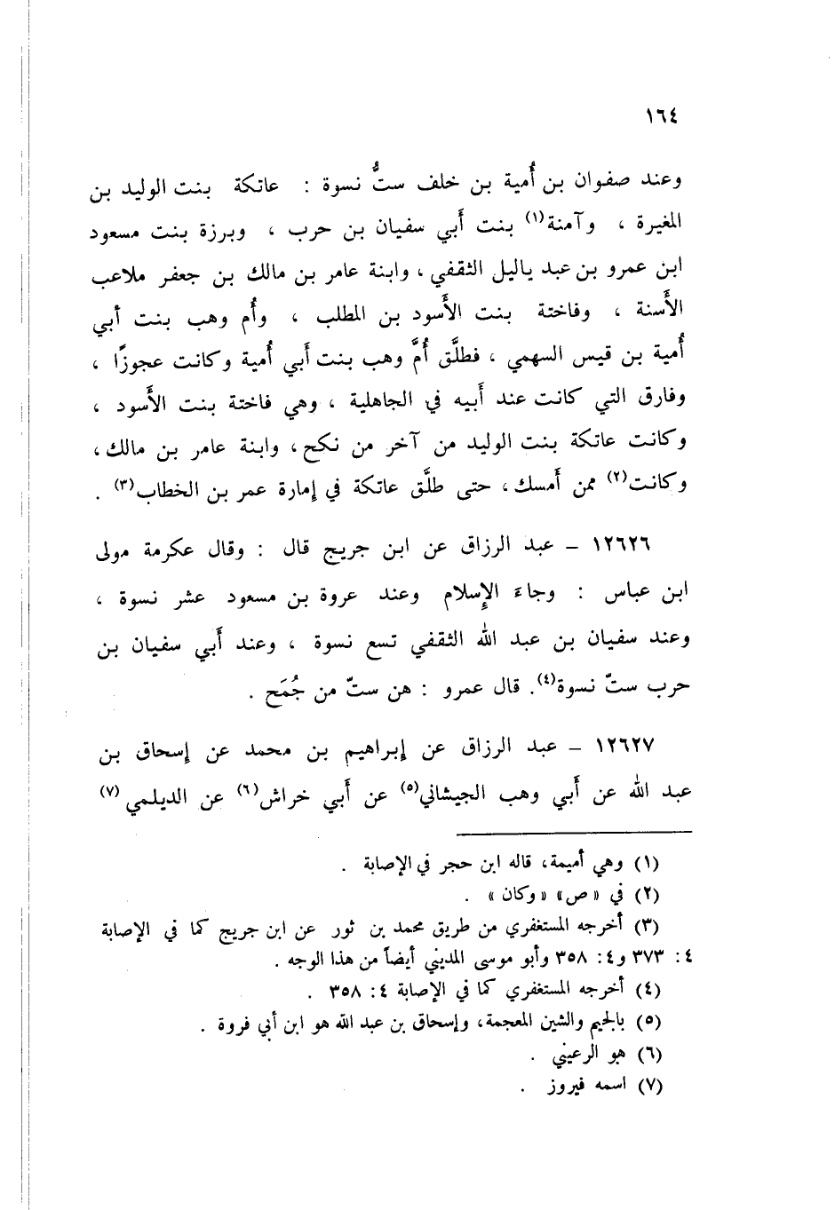 12626 - عَنِ ابْنِ جُرَيْجٍ قَالَ: وَقَالَ عِكْرِمَةُ مَوْلَى ابْنِ عَبَّاسٍ: وَجَاءَ الْإِسْلَامُ وَعِنْدَ عُرْوَةَ بْنِ مَسْعُودٍ عَشْرُ نِسْوَةٍ، وَعِنْدَ سُفْيَانَ بْنِ عَبْدِ اللَّهِ الثَّقَفِيِّ تِسْعُ نِسْوَةٍ، وَعِنْدَ أَبِي سُفْيَانَ بْنِ حَرْبٍ سِتُّ نِسْوَةٍ، قَالَ عَمْرٌو: «§هُنَّ سِتٌّ مِنْ جُمَحَ»