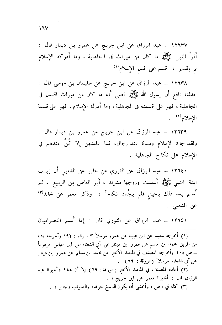 12639 - عَنِ ابْنِ جُرَيْجٍ، عَنْ عَمْرِو بْنِ دِينَارٍ قَالَ: «وَلَقَدْ §جَاءَ الْإِسْلَامُ وَنِسَاءٌ عِنْدَ رِجَالٍ فَمَا عَلِمْتُهُنَّ إِلَّا كُنَّ عِنْدَهُمْ فِي الْإِسْلَامِ عَلَى نِكَاحِ الْجَاهِلِيَّةِ»