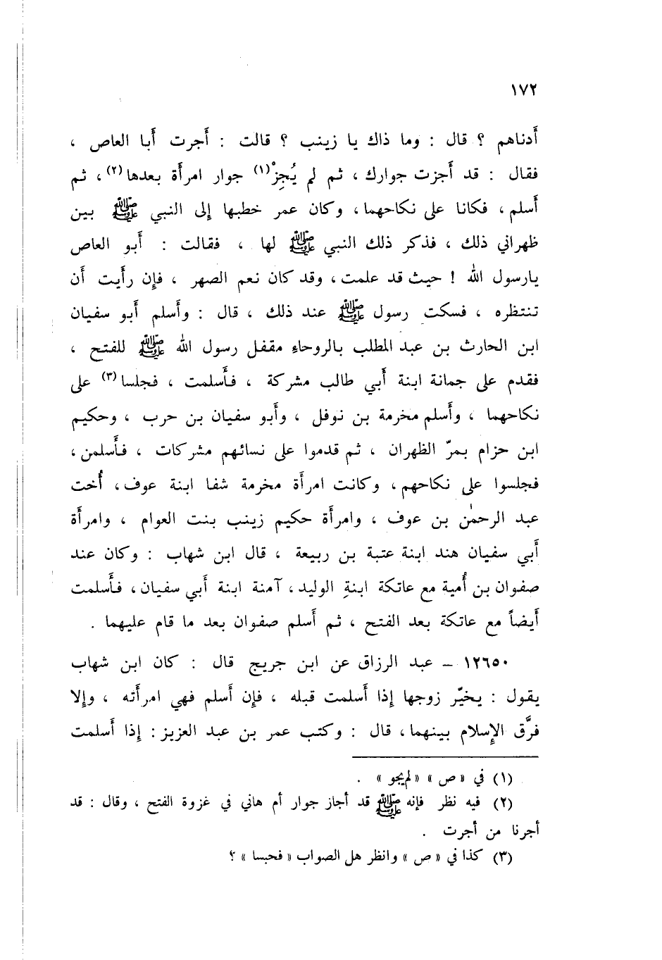 12650 - عَنِ ابْنِ جُرَيْجٍ قَالَ: كَانَ ابْنُ شِهَابٍ يَقُولُ: «§يُخَيَّرُ زَوْجُهَا إِذَا أَسْلَمَتْ قَبْلَهُ، فَإِنْ أَسْلَمَ فَهِيَ امْرَأَتُهُ وَإِلَا فَرَّقَ الْإِسْلَامُ بَيْنَهُمَا». قَالَ: وَكَتَبَ عُمَرُ بْنُ عَبْدِ الْعَزِيزِ: «إِذَا أَسْلَمَتْ قَبْلَهُ خَلَعَهَا مِنْهُ الْإِسْلَامُ كَمَا تُخْلَعُ الْأَمَةُ مِنَ الْعَبْدِ إِذَا أُعْتِقَتْ قَبْلَهُ»