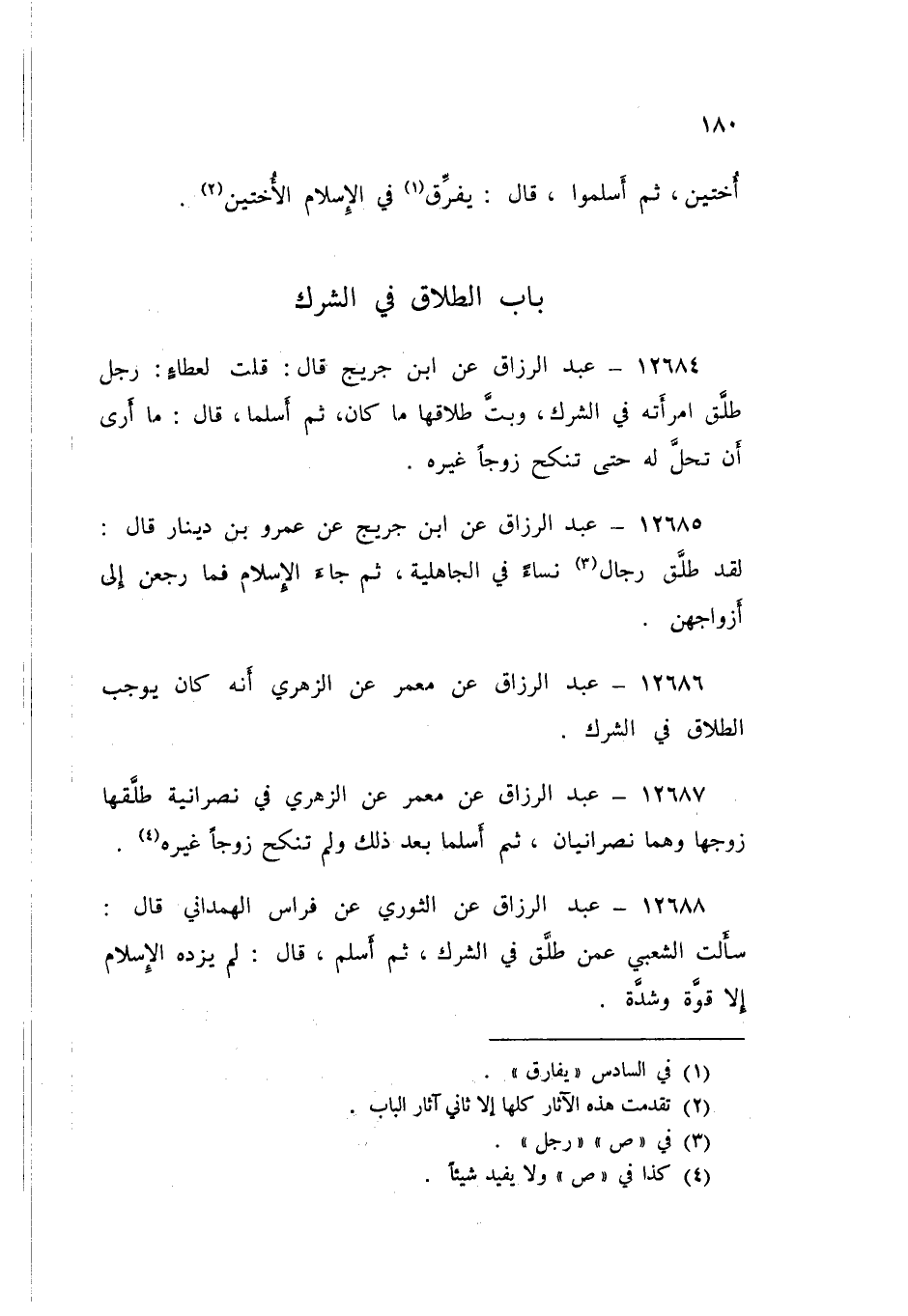 12686 - عَنْ مَعْمَرٍ، عَنِ الزُّهْرِيِّ: أَنَّهُ كَانَ «§يُوجِبُ الطَّلَاقَ فِي الشِّرْكِ»