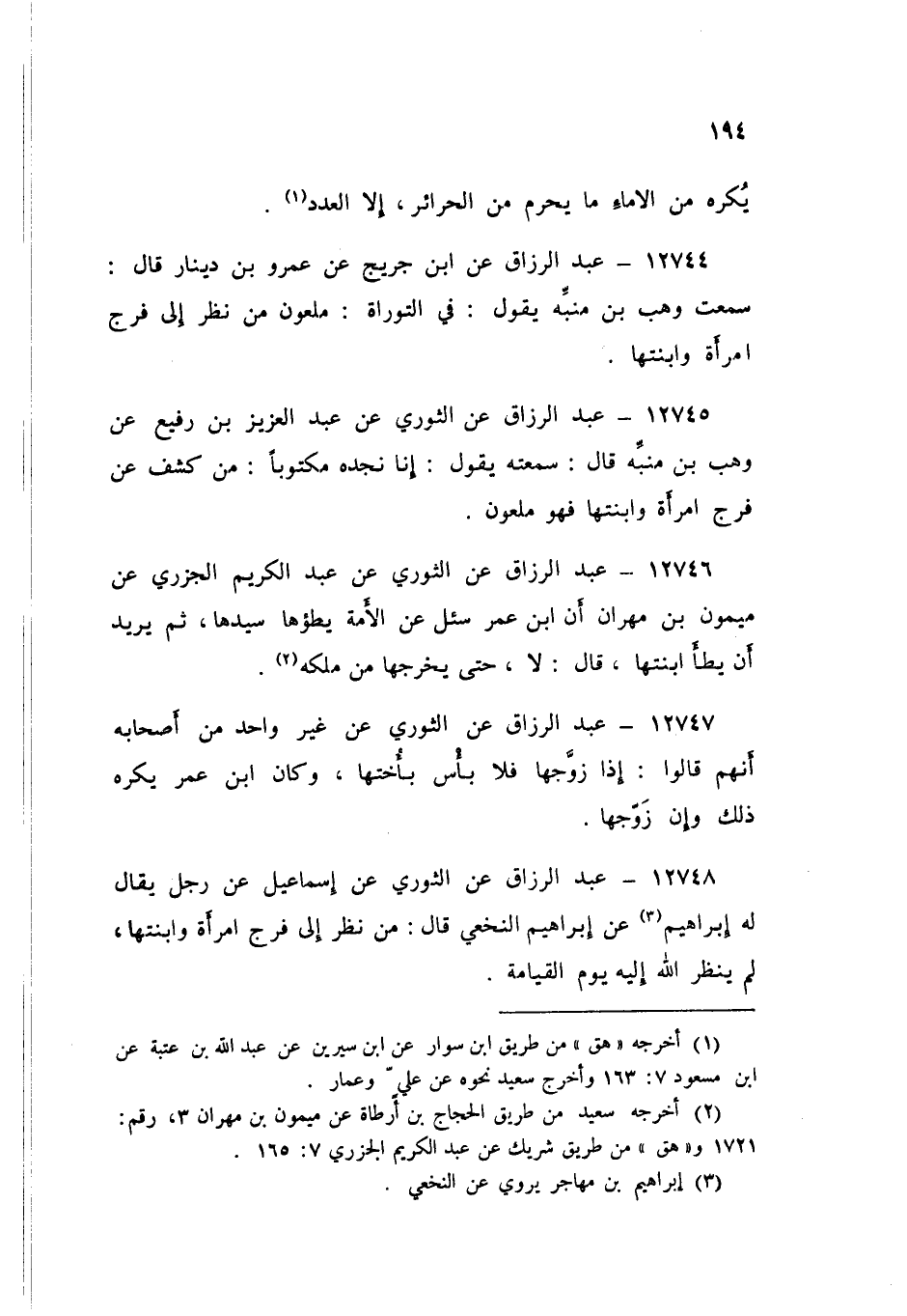 12748 - عَنِ الثَّوْرِيِّ، عَنْ إِسْمَاعِيلَ، عَنْ رَجُلٍ يُقَالُ لَهُ إِبْرَاهِيمُ، عَنْ إِبْرَاهِيمَ النَّخَعِيِّ، قَالُ: «§مَنْ نَظَرَ إِلَى فَرْجِ امْرَأَةٍ وَابْنَتِهَا، لَمْ يَنْظُرِ اللَّهُ إِلَيْهِ يَوْمَ الْقِيَامَةِ»