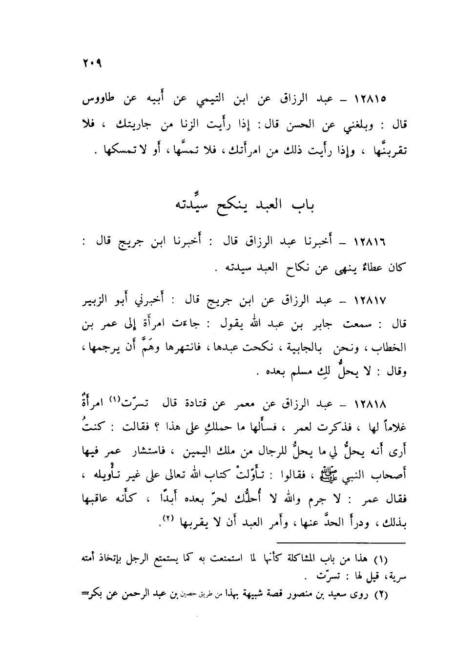 12816 - عَبْدُ الرَّزَّاقِ قَالَ: أَخْبَرَنَا ابْنُ جُرَيْجٍ قَالَ: كَانَ عَطَاءٌ: «§يَنْهَى عَنْ نِكَاحِ الْعَبْدِ سَيِّدَتَهُ»