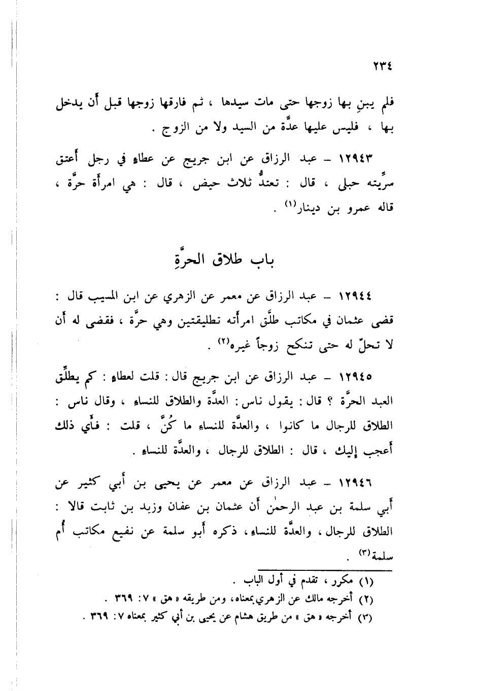 12945 - عَنِ ابْنِ جُرَيْجٍ قَالَ: قُلْتُ لِعَطَاءٍ: كَمْ يُطَلِّقُ الْعَبْدُ الْحُرَّةَ؟ قَالَ: " يَقُولُ نَاسٌ: الْعِدَّةُ وَالطَّلَاقُ لِلنِّسَاءِ. وَقَالَ نَاسٌ: الطَّلَاقَ لِلرِّجَالِ مَا كَانُوا وَالْعِدَّةُ لِلنِّسَاءِ مَا كُنَّ ". قُلْتُ: فَأَيُّ ذَلِكَ أَعْجَبُ إِلَيْكَ؟ قَالَ: «§الطَّلَاقُ لِلرِّجَالِ، وَالْعِدَّةُ لِلنِّسَاءِ»
