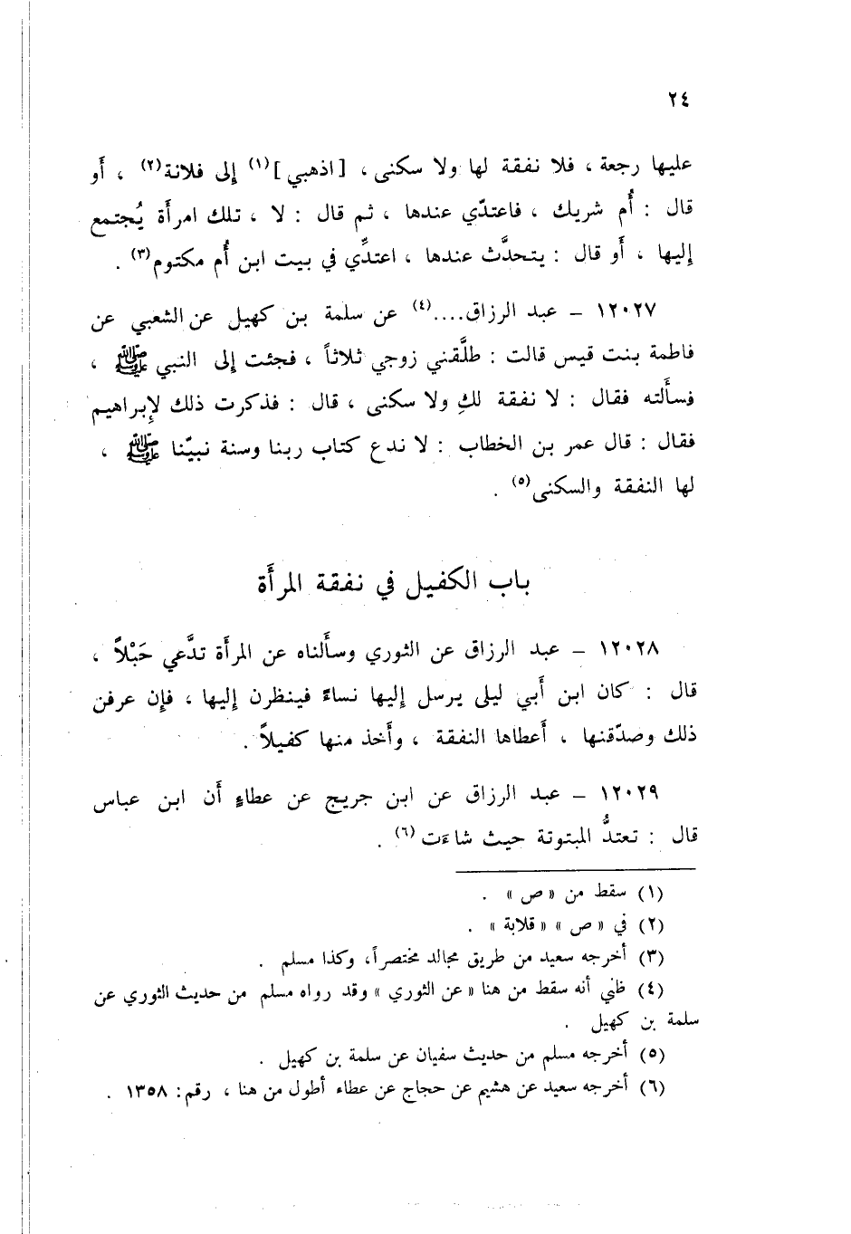 12028 - عَنِ الثَّوْرِيِّ، وَسَأَلْنَاهُ، عَنِ §الْمَرْأَةِ تَدَّعِي حَبَلًا قَالَ: كَانَ ابْنُ أَبِي لَيْلَى يُرْسِلُ إِلَيْهَا نِسَاءً فَيَنْظُرْنَ إِلَيْهَا فَإِنْ عَرَفْنَ ذَلِكَ وَصَدَّقْنَهَا، أَعْطَاهَا النَّفَقَةَ، وَأَخَذَ مِنْهَا كَفِيلًا "