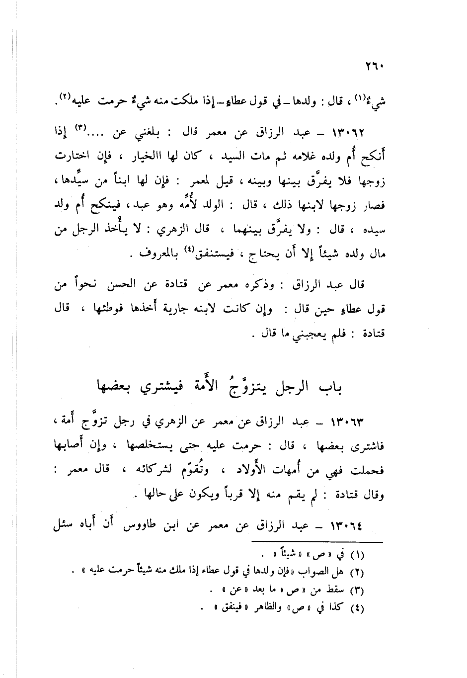 13064 - عَنْ مَعْمَرٍ، عَنِ ابْنِ طَاوُسٍ، أَنَّ أَبَاهُ سُئِلَ عَنْهَا، فَقَالَ: «§مَا هِيَ امْرَأَتَهُ، هِيَ جَارِيَتُهُ كَأَنَّهُ كَرِهَهَا»