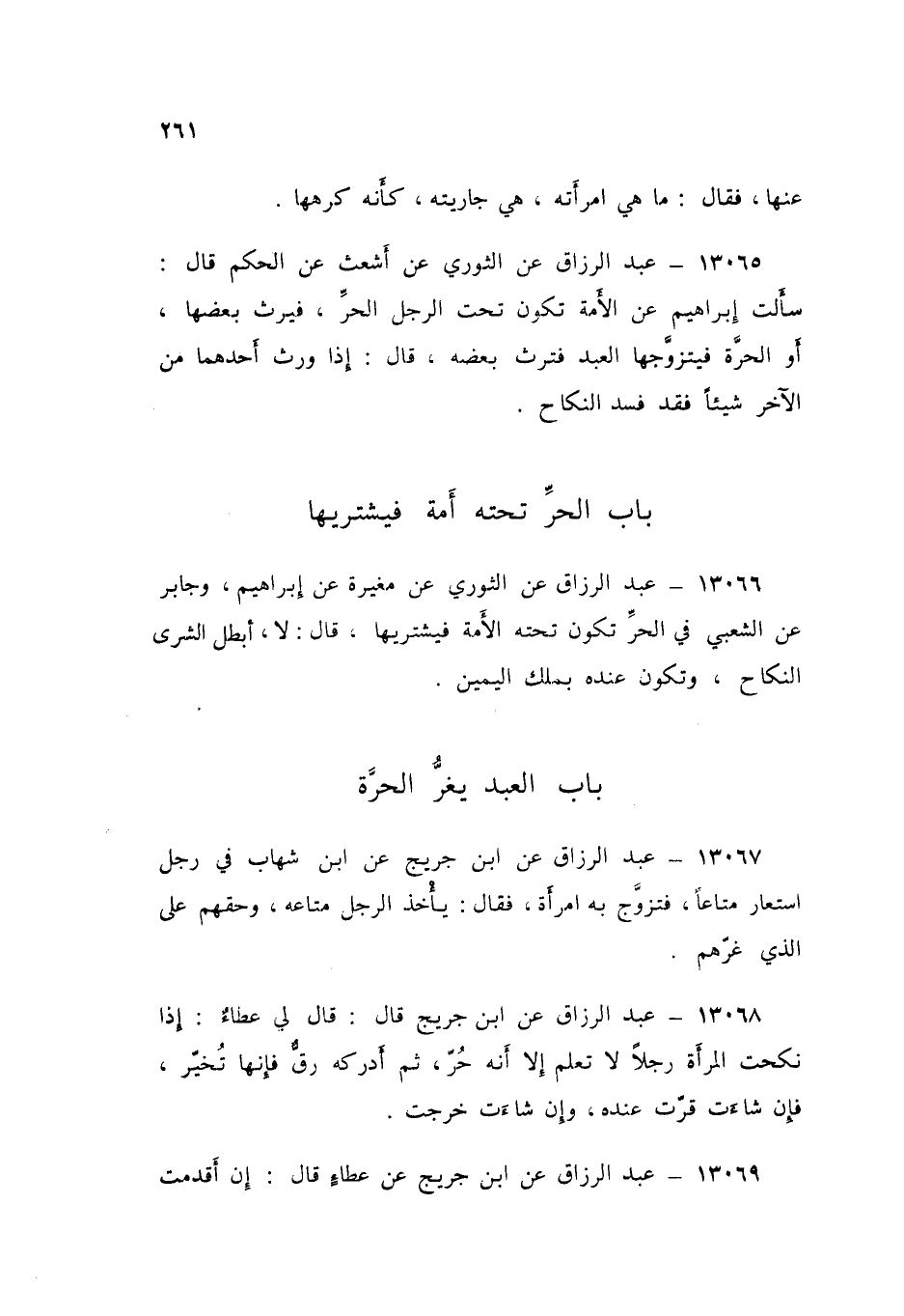 13068 - عَنِ ابْنِ جُرَيْجٍ قَالَ: قَالَ لِي عَطَاءٌ: «§إِذَا نَكَحَتِ الْمَرْأَةُ رَجُلًا لَا تَعْلَمُ إِلَّا أَنَّهُ حُرٌّ، ثُمَّ أَدْرَكَهُ رِقٌّ، فَإِنَّهَا تُخَيَّرُ، فَإِنْ شَاءَتْ قَرَّتْ عِنْدَهُ، وَإِنْ شَاءَتْ خَرَجَتْ»