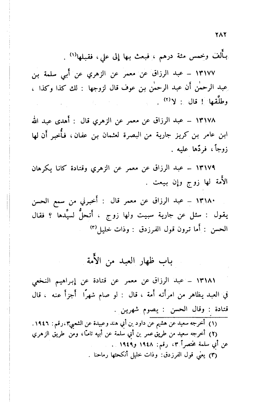 13178 - عَنْ مَعْمَرٍ، عَنِ الزُّهْرِيِّ قَالَ: أَهْدَى عَبْدُ اللَّهِ بْنُ عَامِرِ بْنِ كَرِيزٍ جَارِيَةً مِنَ الْبَصْرَةِ لِعُثْمَانَ بْنِ عَفَّانَ: «§فَأُخْبِرَ أَنَّ لَهَا زَوْجًا فَرَدَّهَا عَلَيْهِ»