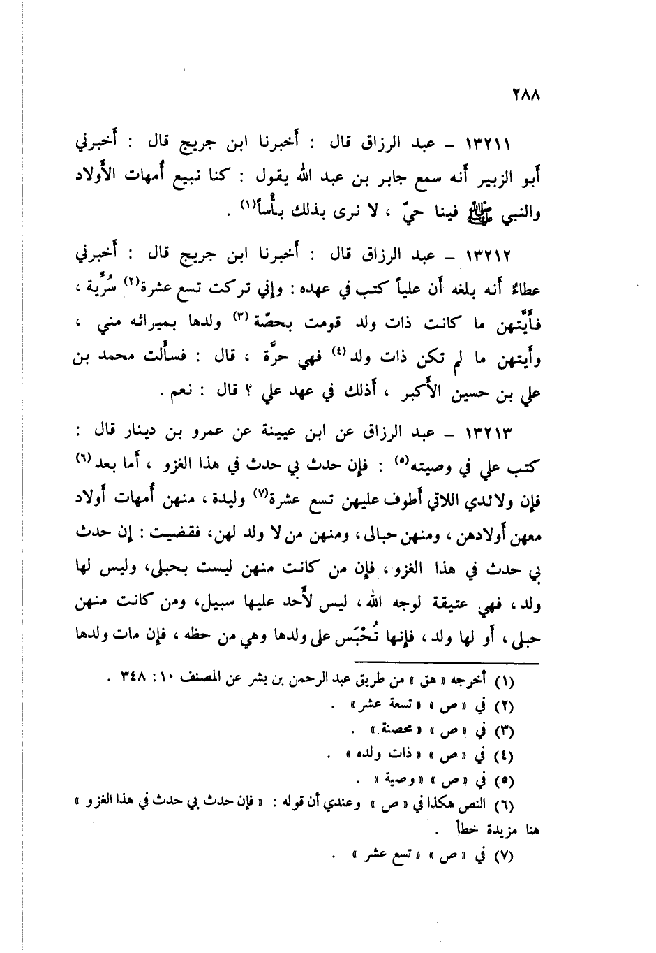 13212 - عَبْدُ الرَّزَّاقِ، أَخْبَرَنَا ابْنُ جُرَيْجٍ قَالَ: عَطَاءٌ أَنَّهُ بَلَغَهُ، أَنَّ عَلِيًّا، كَتَبَ فِي عَهْدِهِ، «§وَإِنِّي تَرَكْتُ تِسْعَ عَشْرَةَ سُرِّيَّةً، فَأَيَّتُهُنَّ مَا كَانَتْ ذَاتَ وَلَدٍ قُوِّمَتْ بِحِصَّةِ وَلَدِهَا بِمِيرَاثِهِ مِنِّي، وَأَيَّتُهُنَّ مَا لَمْ تَكُنْ ذَاتَ وَلَدٍ فَهِيَ حُرَّةٌ». قَالَ: فَسَأَلْتُ مُحَمَّدَ بْنَ عَلِيِّ بْنِ حُسَيْنٍ الْأَكْبَرَ: أَذَلِكَ فِي عَهْدِ عَلِيٍّ؟ قَالَ: «نَعَمْ»