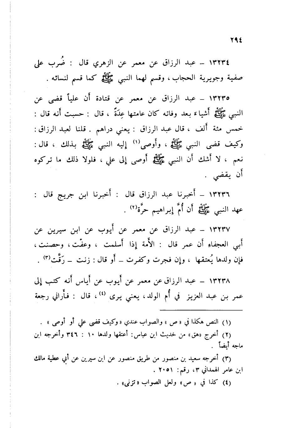 13236 - عَبْدُ الرَّزَّاقِ قَالَ: أَخْبَرَنَا ابْنُ جُرَيْجٍ قَالَ: «§عَهِدَ النَّبِيُّ صَلَّى اللّ0َهُ عَلَيْهِ وَسَلَّمَ، أَنَّ أُمَّ إِبْرَاهِيمَ حُرَّةٌ»