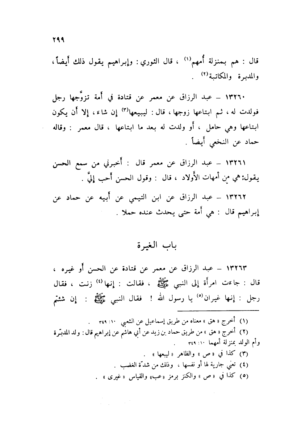 13262 - عَنِ ابْنِ التَّيْمِيِّ، عَنْ أَبِيهِ، عَنْ حَمَّادٍ، عَنْ إِبْرَاهِيمَ قَالَ: «§هِيَ أَمَةٌ، حَتَّى تُحْدِثَ عِنْدَهُ حَمْلًا»