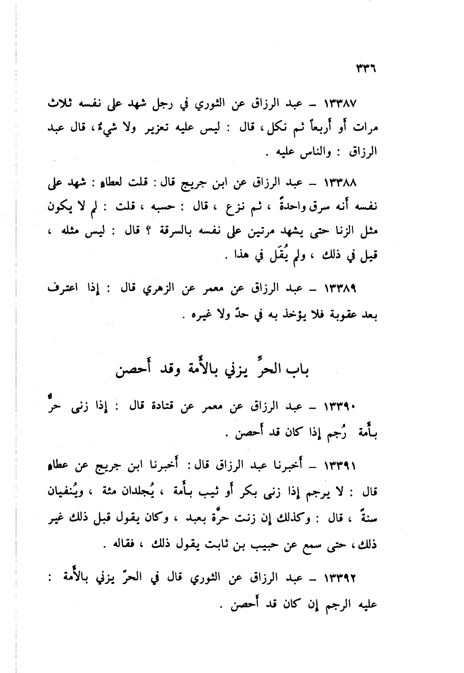 13392 - عَنِ الثَّوْرِيِّ قَالَ: «فِي §الْحُرِّ يَزْنِي بِالْأَمَةِ عَلَيْهِ الرَّجْمُ إِنْ كَانَ قَدْ أُحْصَنَ»