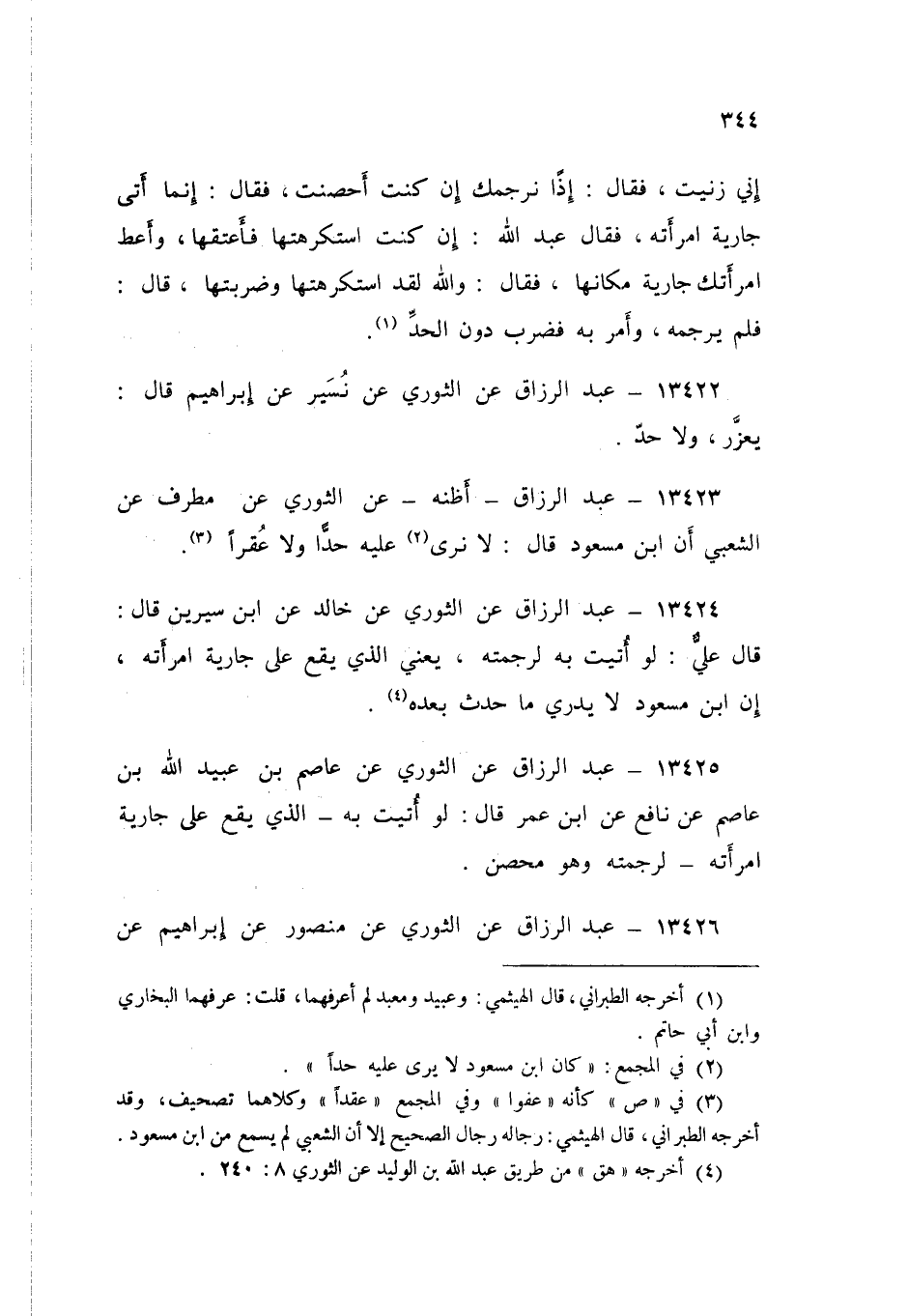 13423 - أَظُنُّهُ عَنِ الثَّوْرِيِّ، عَنْ مُطَرِّفٍ، عَنِ الشَّعْبِيِّ، أَنَّ ابْنَ مَسْعُودٍ قَالَ: «§لَا نَرَى عَلَيْهِ حَدًّا، وَلَا عُقْرًا»