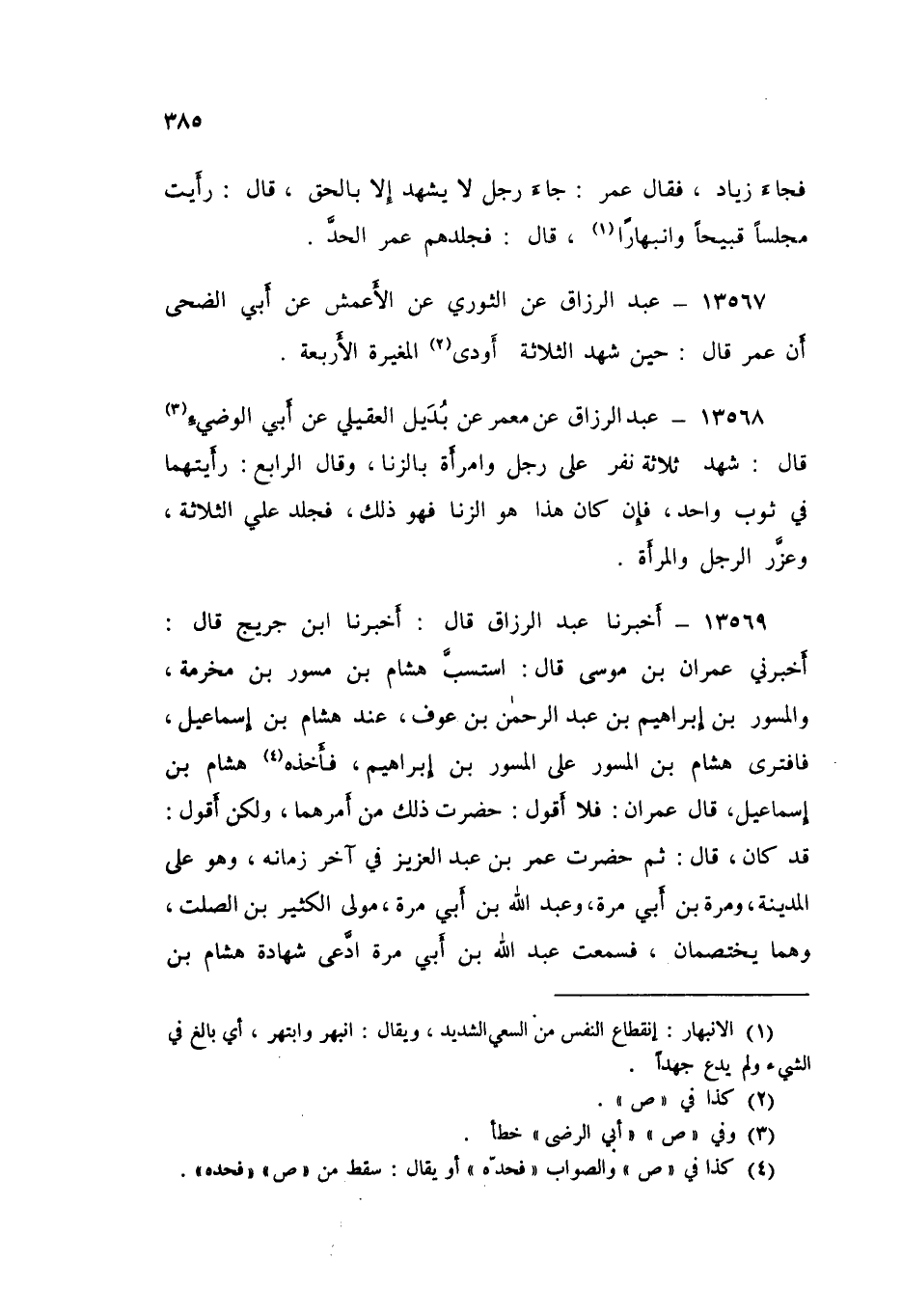 13569 - عَبْدُ الرَّزَّاقِ قَالَ: أَخْبَرَنَا ابْنُ جُرَيْجٍ قَالَ: أَخْبَرَنِي عِمْرَانُ بْنُ مُوسَى قَالَ: " §اسْتَسَبَّ هِشَامُ بْنُ مِسْوَرِ بْنِ مَخْرَمَةَ، وَالْمِسْوَرُ بْنُ إِبْرَاهِيمَ بْنِ عَبْدِ الرَّحْمَنِ بْنِ عَوْفٍ، عِنْدَ هِشَامِ بْنِ إِسْمَاعِيلَ، فَافْتَرَى هِشَامُ بْنُ الْمِسْوَرِ عَلَى الْمِسْوَرِ بْنِ إِبْرَاهِيمَ، فَأَخَذَهُ هِشَامُ بْنُ إِسْمَاعِيلَ، قَالَ عِمْرَانُ: فَلَا أَقُولُ: حَضَرْتُ ذَلِكَ مِنْ أَمْرِهِمَا، وَلَكِنْ أَقُولُ: قَدْ كَانَ قَالَ: ثُمَّ حَضَرْتُ عُمَرَ بْنَ عَبْدِ الْعَزِيزِ فِي آخِرِ زَمَانِهِ، وَهُوَ عَلَى الْمَدِينَةِ، وَمُرَّةُ بْنُ أَبِي مُرَّةَ، وَعَبْدُ اللَّهِ بْنُ أَبِي مُرَّةَ، مَوْلَى الْكَثِيرِ بْنِ الصَّلْتِ، وَهُمَا يَخْتَصِمَانِ، فَسَمِعْتُ عَبْدَ اللَّهِ بْنَ أَبِي مُرَّةَ ادَّعَى شَهَادَةَ هِشَامِ بْنِ -[386]- الْمِسْوَرِ، فَقَالَ مُرَّةَ: ذَلِكَ رَجُلٌ لَا تَجُوزُ شَهَادَتُهُ عَلَيَّ وَلَا عَلَى مُسْلِمٍ، لِأَنَّهُ مَحْدُودٌ مَسْخُوطٌ، فَقَالَ لَهُ عُمَرُ: ذَلِكَ إِلَيْكَ أَوْ إِلَى أُمِّكَ؟ فَأَمَرَ بِهِ عُمَرُ، فَأُدْنِيَ مِنْهُ حَتَّى نَالَتْهُ الْعَصَا، فَضَرَبَهُ بِهَا، حَتَّى شَقَّهَا عَلَى رَأْسِهِ وَيَدَيْهِ، ثُمَّ أَمَرَ بِهِ فَجُرَّ عَلَى اسْتِهِ، حَتَّى انْتَهَى إِلَى طَرَفِ السِّمَاطِ، ثُمَّ أَقْبَلَ عَلَى عَبْدِ اللَّهِ بْنِ أَبِي مُرَّةَ الْمُدَّعِي شَهَادَةَ هِشَامٍ فَقَالَ: جَازَتْ شَهَادَةُ هِشَامٍ لَكَ مَعَ عَدْلٍ "
