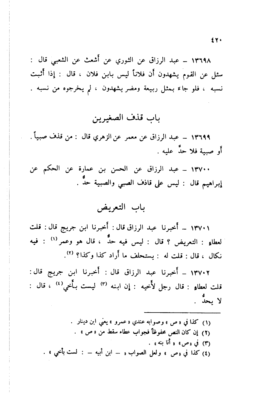 13703 - عَنْ مَعْمَرٍ، عَنِ الزُّهْرِيِّ، عَنْ سَالِمٍ، عَنِ ابْنِ عُمَرَ، أَنَّ عُمَرَ كَانَ «§يَحُدَّ فِي التَّعْرِيضِ بِالْفَاحِشَةِ»
