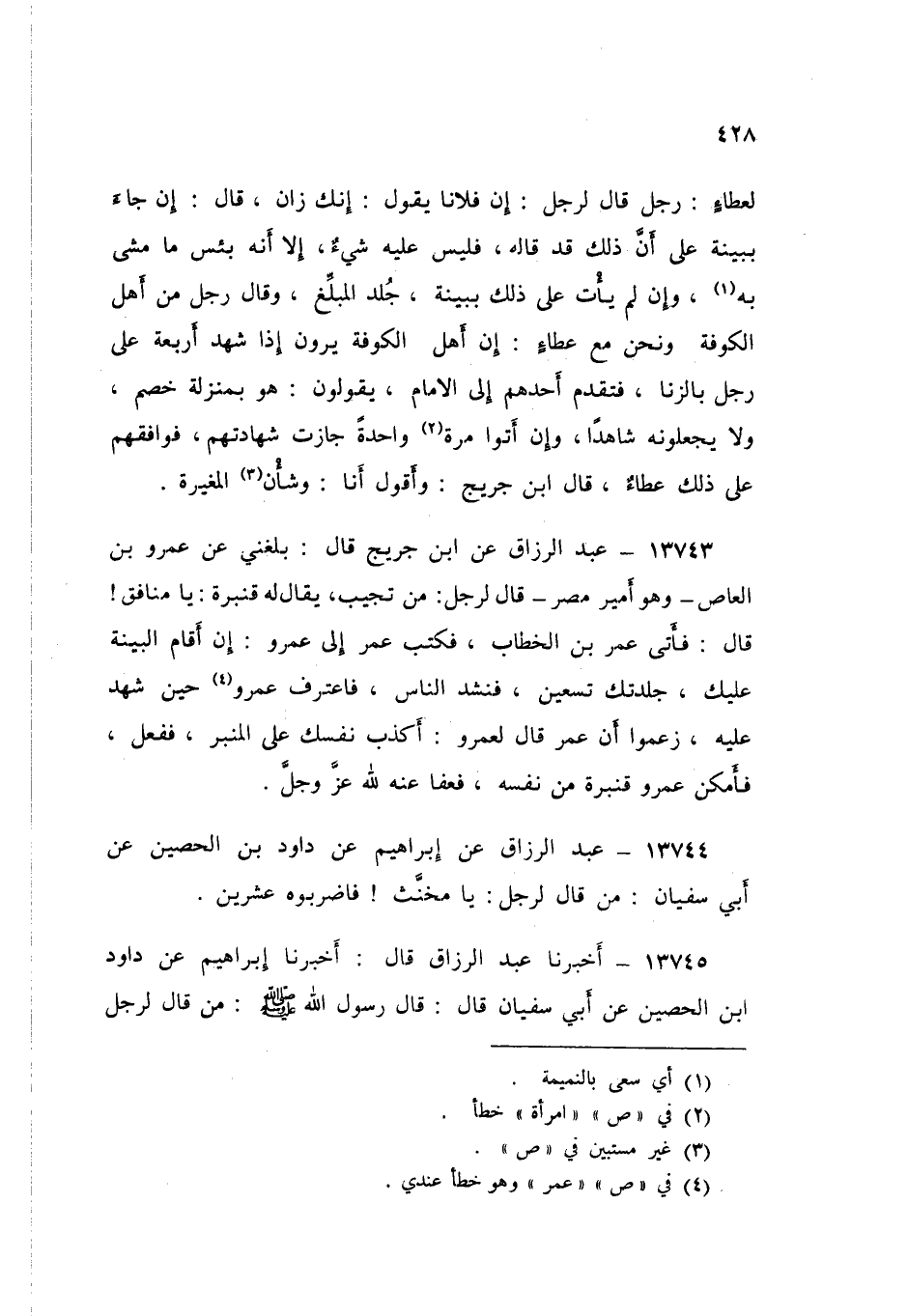 13745 - عَبْدُ الرَّزَّاقِ قَالَ: أَخْبَرَنَا إِبْرَاهِيمُ، عَنْ دَاوُدَ بْنِ الْحُصَيْنِ، عَنْ أَبِي سُفْيَانَ قَالَ: قَالَ رَسُولُ اللَّهِ صَلَّى اللهُ عَلَيْهِ وَسَلَّمَ: «§مَنْ قَالَ لِرَجُلٍ مِنَ الْأَنْصَارِ يَا يَهُودِيُّ، فَاضْرِبُوهُ عِشْرِينَ»