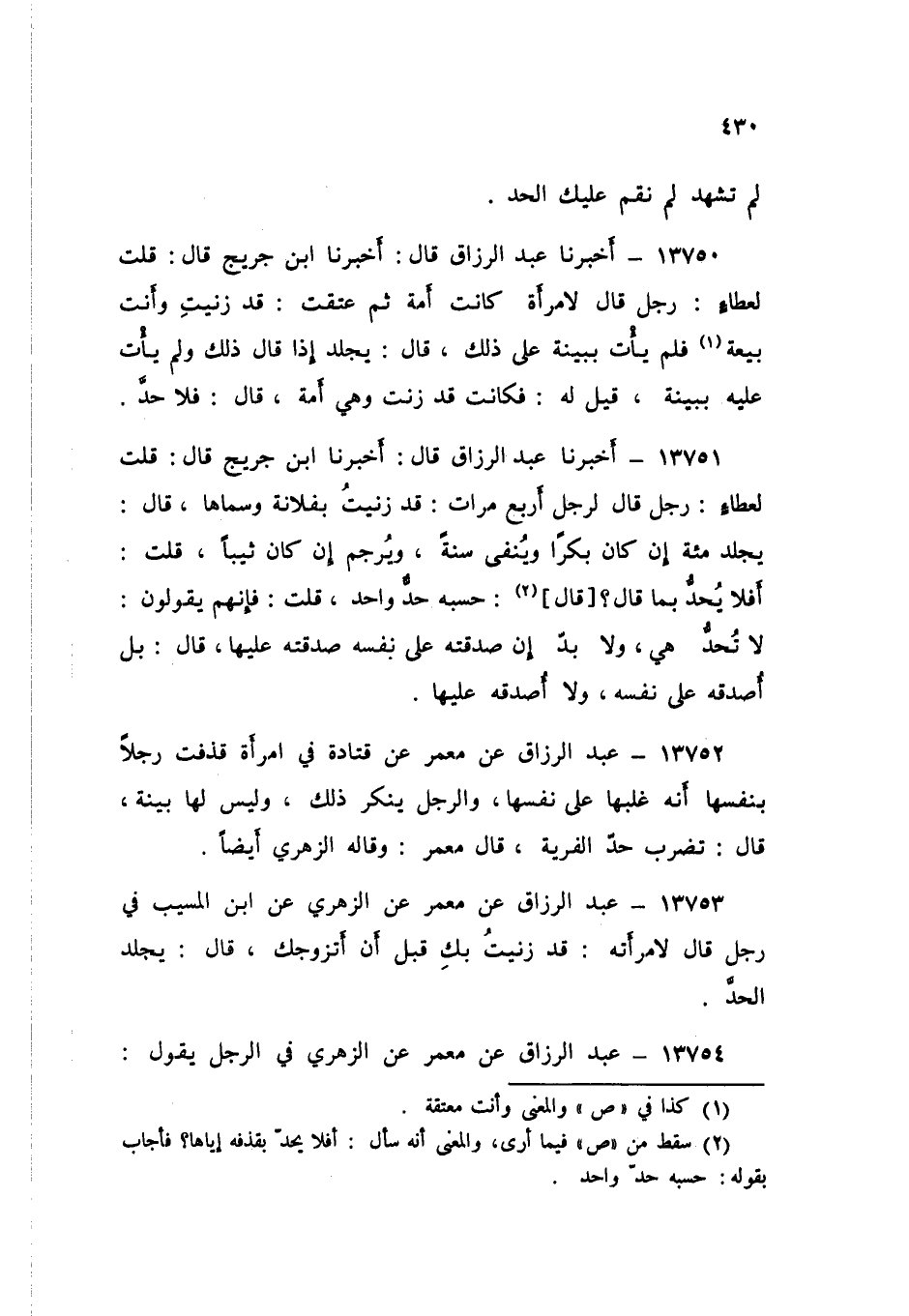13753 - عَنْ مَعْمَرٍ، عَنِ الزُّهْرِيِّ، عَنِ ابْنِ الْمُسَيِّبِ فِي §رَجُلٍ قَالَ لِامْرَأَتِهِ: قَدْ زَنَيْتُ بِكِ قَبْلَ أَنْ أَتَزَوَّجَكِ قَالَ: «يُجْلَدُ الْحَدَّ»