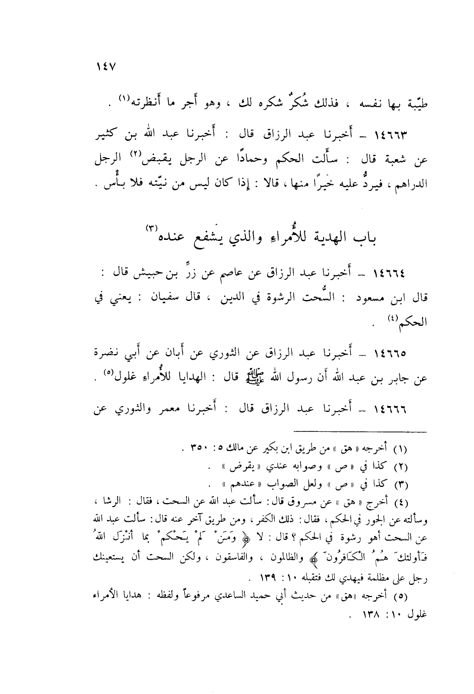14666 - عَبْدُ الرَّزَّاقِ قَالَ: أَخْبَرَنَا مَعْمَرٌ، وَالثَّوْرِيُّ، عَنْ مَنْصُورٍ، عَنْ سَالِمِ بْنِ أَبِي الْجَعْدِ، عَنْ مَسْرُوقٍ قَالَ: جَاءَ §رَجُلٌ مِنْ أَهْلِ دِيَارِنَا فَاسْتَعَانَ مَسْرُوقًا عَلَى مَظْلِمَةٍ لَهُ عِنْدَ ابْنِ زِيَادٍ، فَأَعَانَهُ، فَأَتَاهُ بِجَارِيَةٍ لَهُ بَعْدَ ذَلِكَ، فَرَدَّهَا عَلَيْهِ، وَقَالَ: إِنِّي سَمِعْتُ عَبْدَ اللَّهِ يَقُولُ: «هَذَا السُّحْتُ»