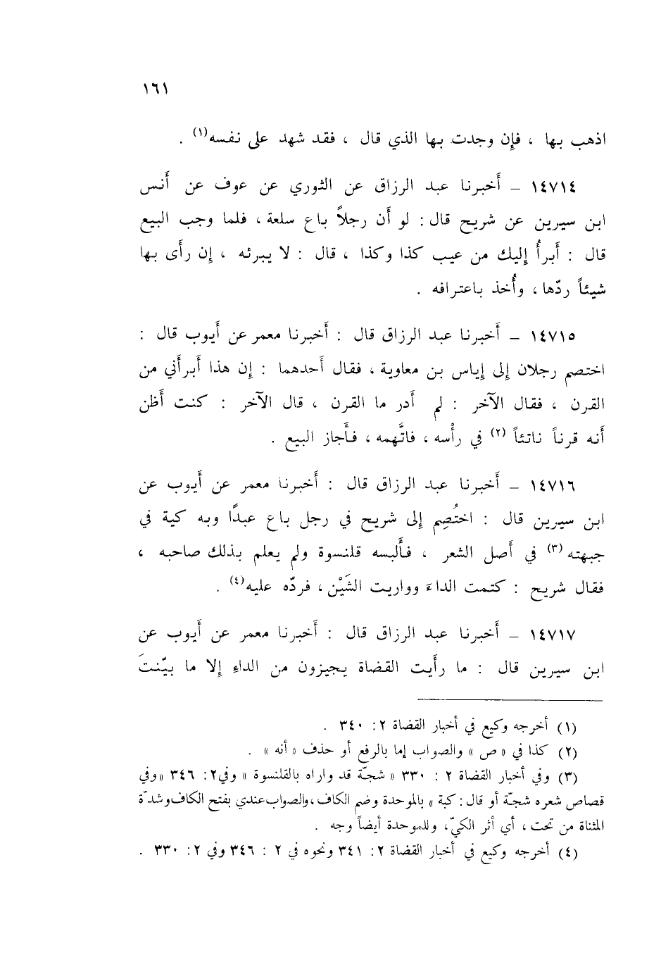 14717 - عَبْدُ الرَّزَّاقِ قَالَ: أَخْبَرَنَا مَعْمَرٌ، عَنْ أَيُّوبَ، عَنِ ابْنِ سِيرِينَ قَالَ: «§مَا رَأَيْتُ الْقُضَاةَ يُجِيزُونَ مِنَ الدَّاءِ إِلَّا مَا بَيَّنْتَ، وَوَضَعْتَ عَلَيْهِ يَدَكَ»