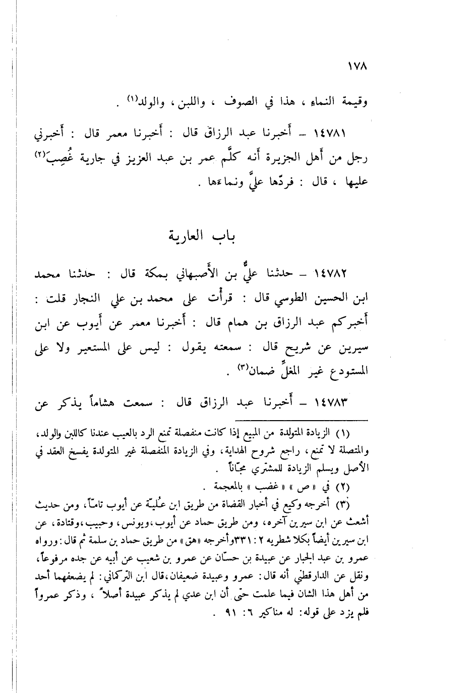 14782 - حَدَّثَنَا عَلِيُّ بْنُ الْأَصْبَهَانِيِّ بِمَكَّةَ قَالَ: حَدَّثَنَا مُحَمَّدُ بْنُ الْحُسَيْنِ الطَّوْسِيُّ قَالَ: قَرَأْتُ عَلَى مُحَمَّدِ بْنِ عَلِيٍّ النَّجَّارِ، قُلْتُ: أَخْبَرَكُمْ عَبْدُ الرَّزَّاقِ بْنُ هَمَّامٍ قَالَ: أَخْبَرَنَا مَعْمَرٌ، عَنْ أَيُّوبَ، عَنِ ابْنِ سِيرِينَ، عَنْ شُرَيْحٍ قَالَ: سَمِعْتُهُ يَقُولُ: «§لَيْسَ عَلَى الْمُسْتَعِيرِ، وَلَا عَلَى الْمُسْتَوْدِعِ غَيْرِ الْمُغِلِّ ضَمَانٌ»، أَخْبَرَنَا