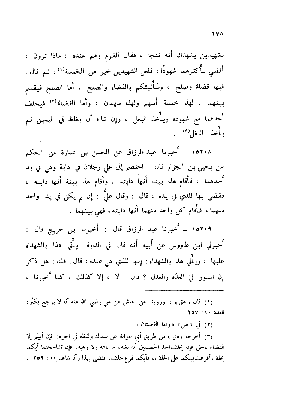 15209 - عَبْدُ الرَّزَّاقِ قَالَ: أَخْبَرَنَا ابْنُ جُرَيْجٍ قَالَ: أَخْبَرَنِي ابْنُ طَاوُسٍ، عَنْ أَبِيهِ، أَنَّهُ قَالَ: فِي §الدَّابَّةِ يَأْتِي هَذَا بِالشُّهَدَاءِ عَلَيْهَا، وَيَأْتِي هَذَا بِالشُّهَدَاءِ: إِنَّهَا لِلَّذِي هِيَ عِنْدَهُ قَالَ: قُلْنَا: «هَلْ ذَكَرَ إِنِ اسْتَوُوا فِي الْعِدَّةِ وَالْعَدْلِ؟» قَالَ: لَا، إِلَّا كَذَلِكَ، كَمَا أَخْبَرَنَا قَالَ: " فَلَا أَعْلَمُ إِلَّا أَنَّ عَطَاءً قَالَ لِي: إِذَا كَانُوا فِي الْعَدْلِ سَوَاءٌ، فَأَكْثَرُهُمْ فِي الْعِدَّةِ إِلَّا إِذَا شَكَّ "