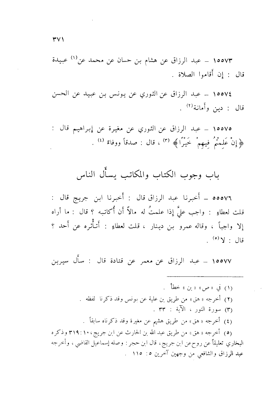 15576 - عَبْدُ الرَّزَّاقِ قَالَ: أَخْبَرَنَا ابْنُ جُرَيْجٍ قَالَ: قُلْتُ لِعَطَاءٍ: §وَاجِبٌ عَلِيَّ إِذَا عَلِمْتُ لَهُ مَالًا أَنْ أُكَاتِبَهُ؟ قَالَ: «مَا أُرَاهُ إِلَّا وَاجِبًا»، وَقَالَهُ عَمْرُو بْنُ دِينَارٍ، قُلْتُ لِعَطَاءٍ: أَتَأْثِرَهُ عَنْ أَحَدٍ؟ قَالَ: «لَا»