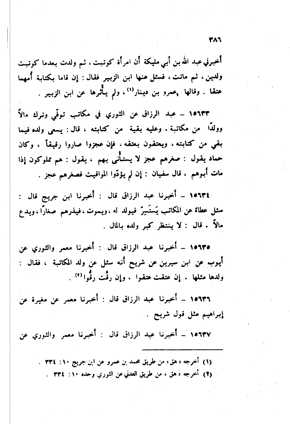 15635 - عَبْدُ الرَّزَّاقِ قَالَ: أَخْبَرَنَا مَعْمَرٌ، وَالثَّوْرِيُّ، عَنْ أَيُّوبَ، عَنِ ابْنِ سِيرِينَ، عَنْ شُرَيْحٍ أَنَّهُ سُئِلَ عَنْ §وَلَدِ الْمُكَاتَبَةِ، فَقَالَ: «وَلَدُهَا مِثْلُهَا، إِنْ عُتِقَتْ عُتِقُوا، وَإِنْ رُقَّتْ رُقُّوا»، أَخْبَرَنَا