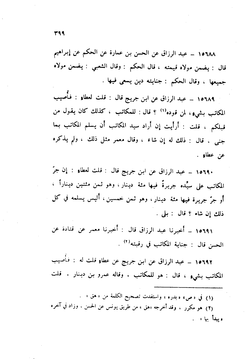 15691 - عَبْدُ الرَّزَّاقِ قَالَ: أَخْبَرَنَا مَعْمَرٌ، عَنْ قَتَادَةَ، عَنِ الْحَسَنِ قَالَ: «§جِنَايَةُ الْمُكَاتَبِ فِي رَقَبَتِهِ»