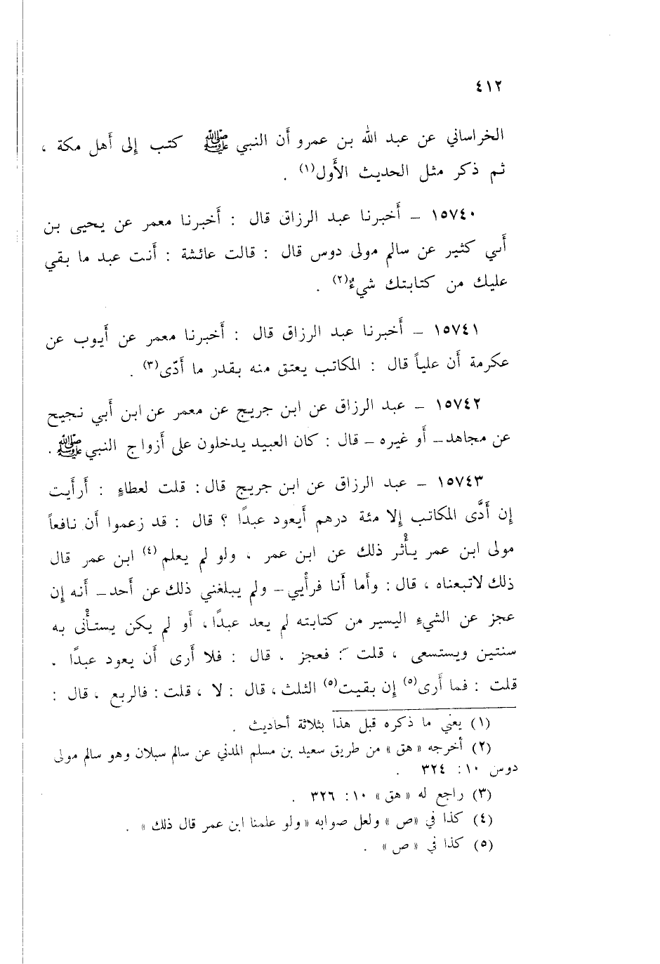 15741 - عَبْدُ الرَّزَّاقِ قَالَ: أَخْبَرَنَا مَعْمَرٌ، عَنْ أَيُّوبَ، عَنْ عِكْرِمَةَ، أَنَّ عَلِيًّا قَالَ: «§الْمُكَاتَبُ يُعْتَقُ مِنْهُ بِقَدْرِ مَا أَدَّى»